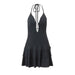 Deep V Neck Ruffle Halter Backless Flower Applique Mini Dress
