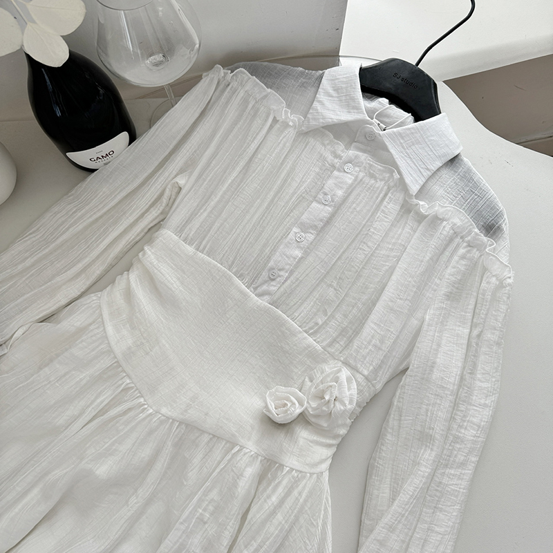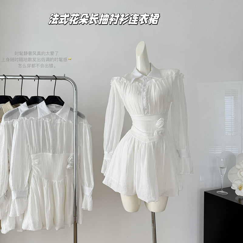 BXOXO - summer inspo Elegant A-line Dress Temperament Long Sleeved Shirt Lapel Dress Gentle Style Women Tea Break Dress Niche Design