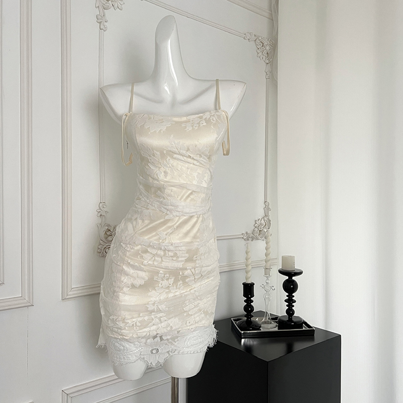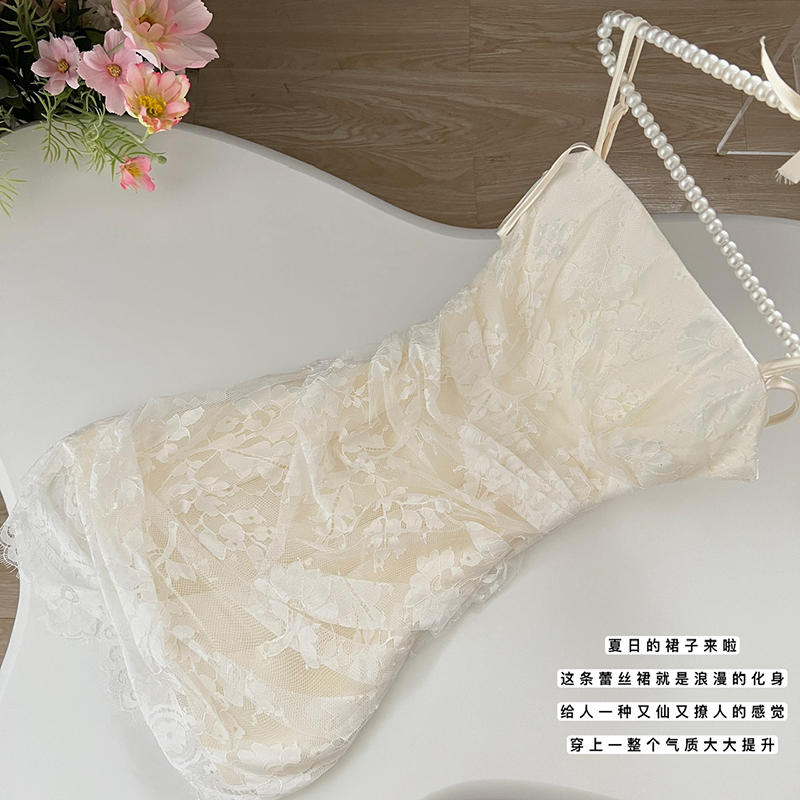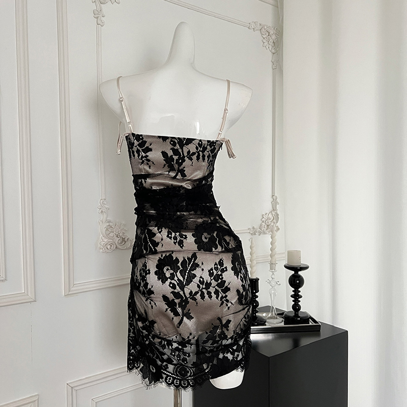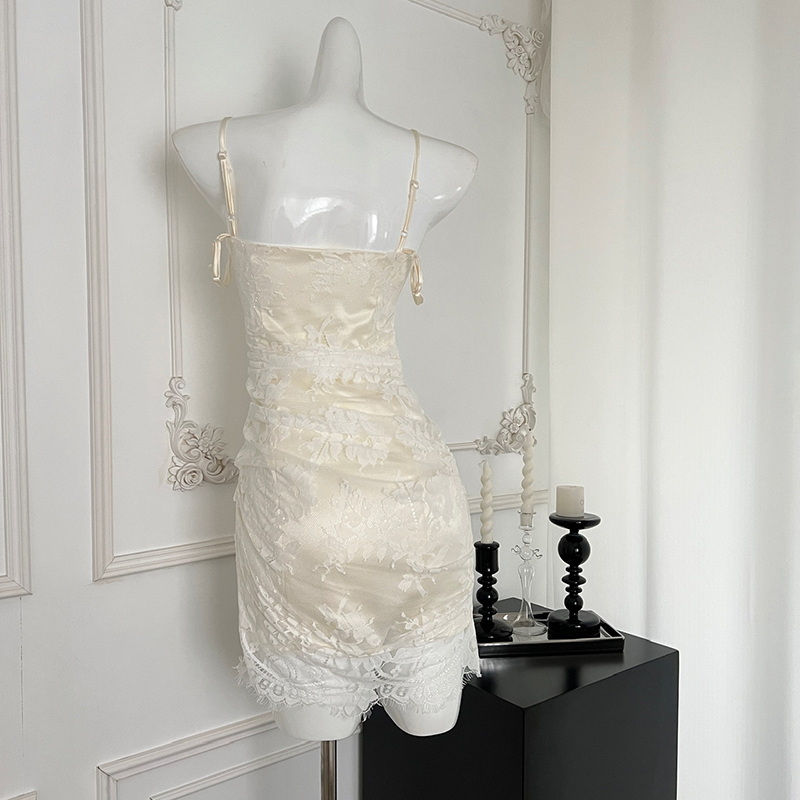 BXOXO - summer inspo Elegant Lace Suspender Dress Vintage Slim Fit Sleeveless Party Dresses Women Fashion Bodycon Dress Summer New