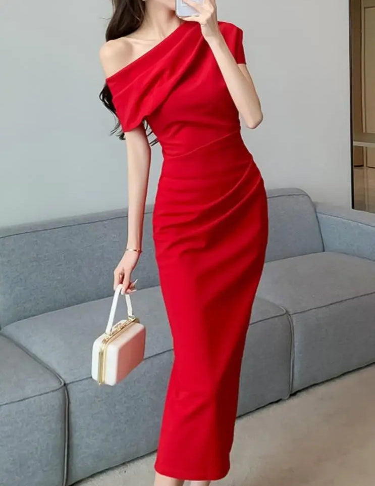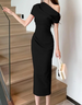Elegant Off Shoulder Evening Party Dresses Women Summer Fashion Slim One Piece Solid Vestidos Korean Graduation Robe Clothing