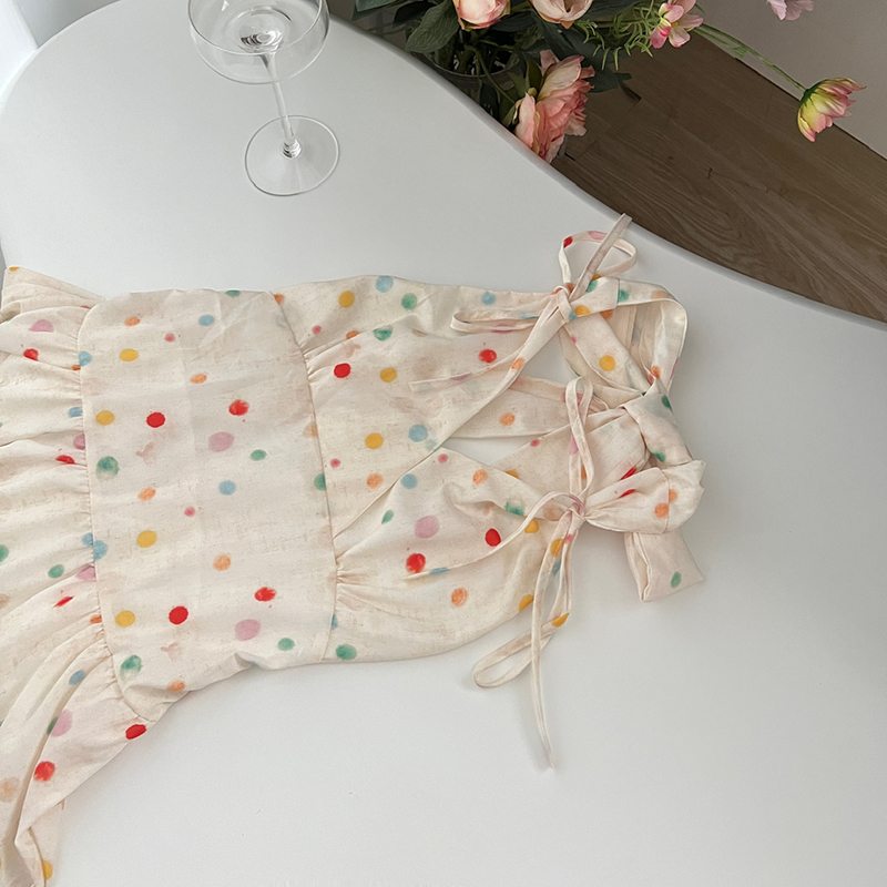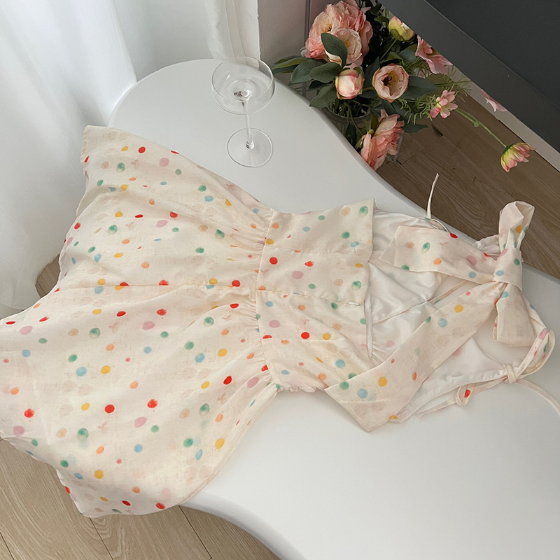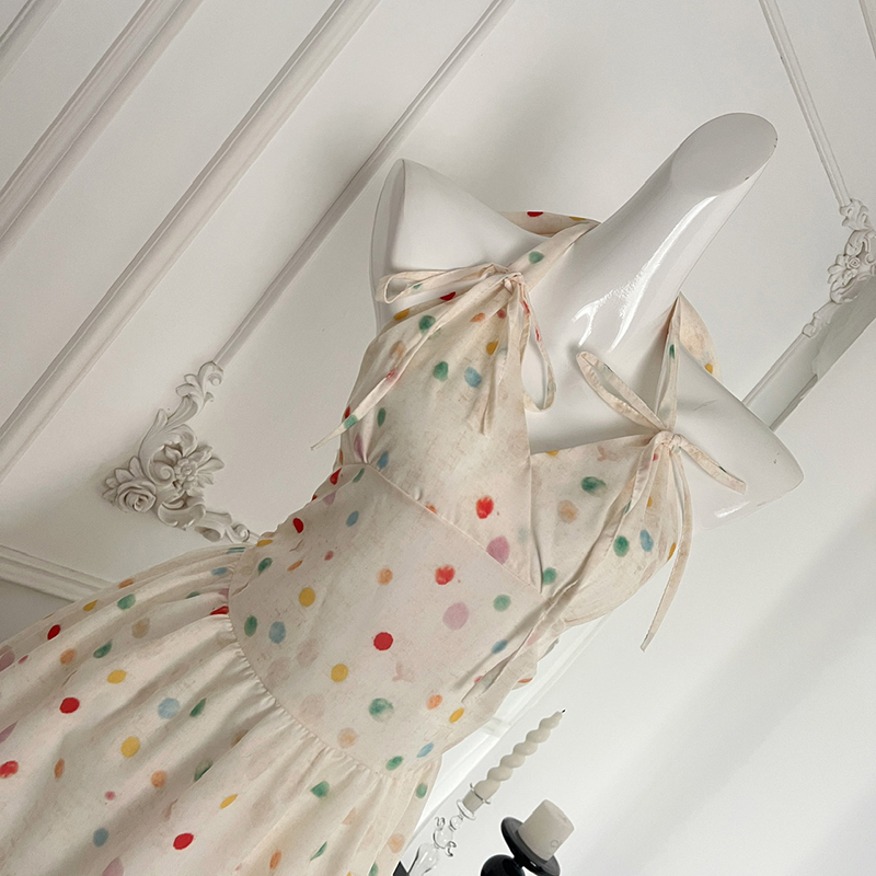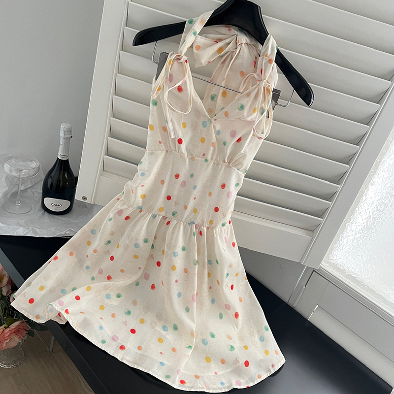 BXOXO - summer inspo Elegant Polka Dot Short Dress Women V-neck Backless Sleeveless Halter Dress Fashion High Waist A-line Mini Dress