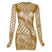• Fishnet Long Sleeve Hollow Out See Through Irregular Cut Out Mini Dress