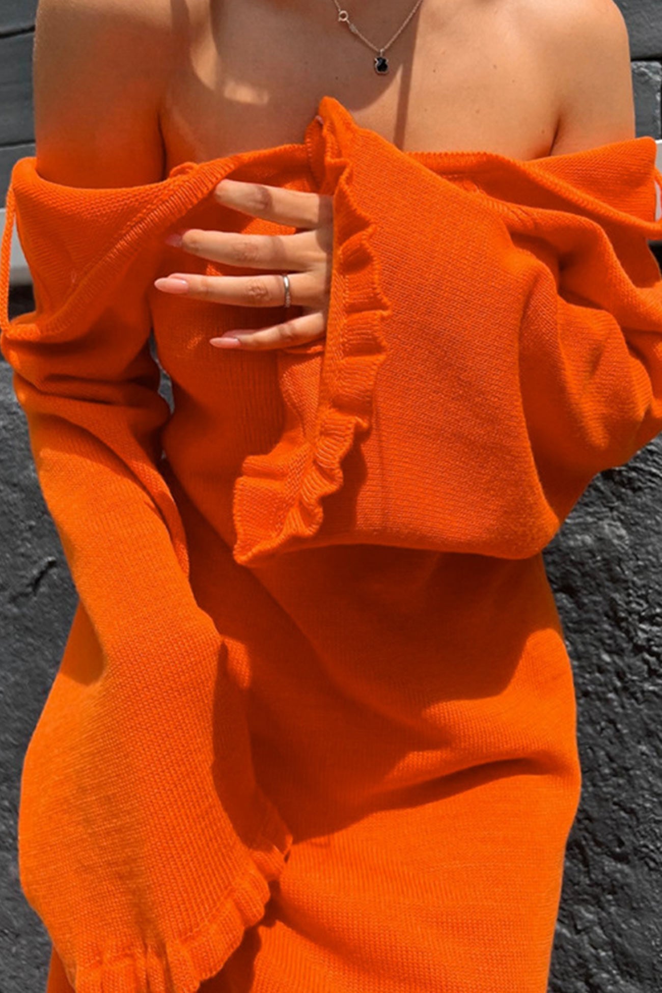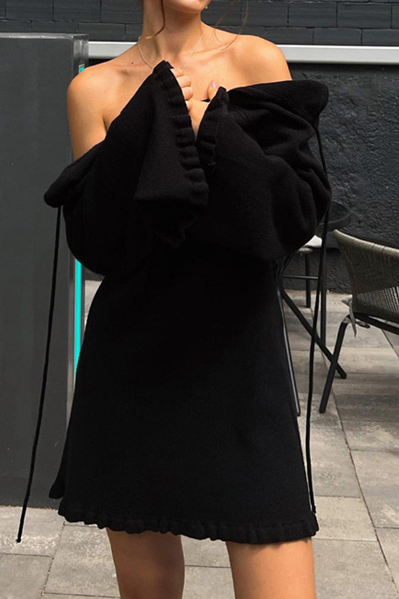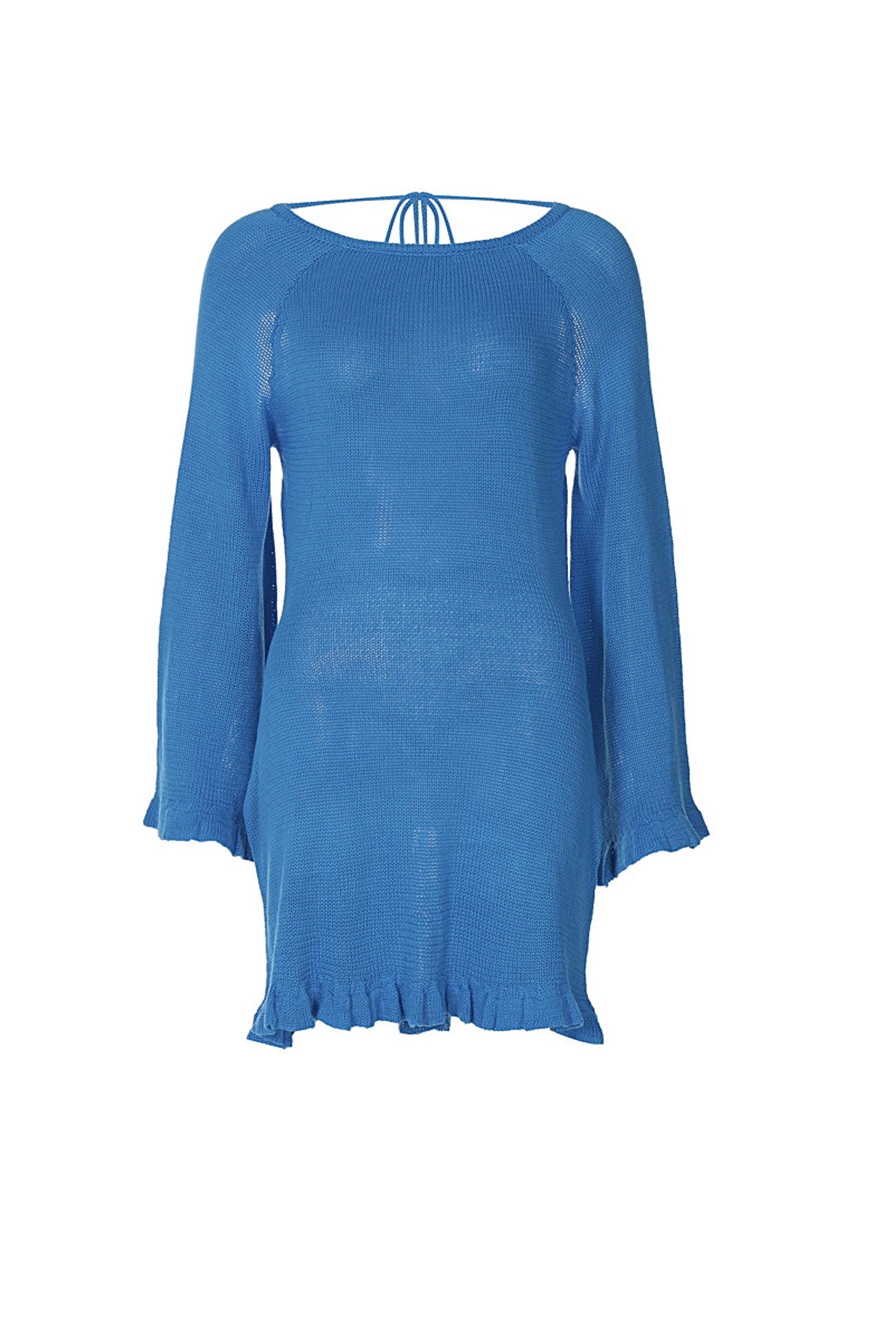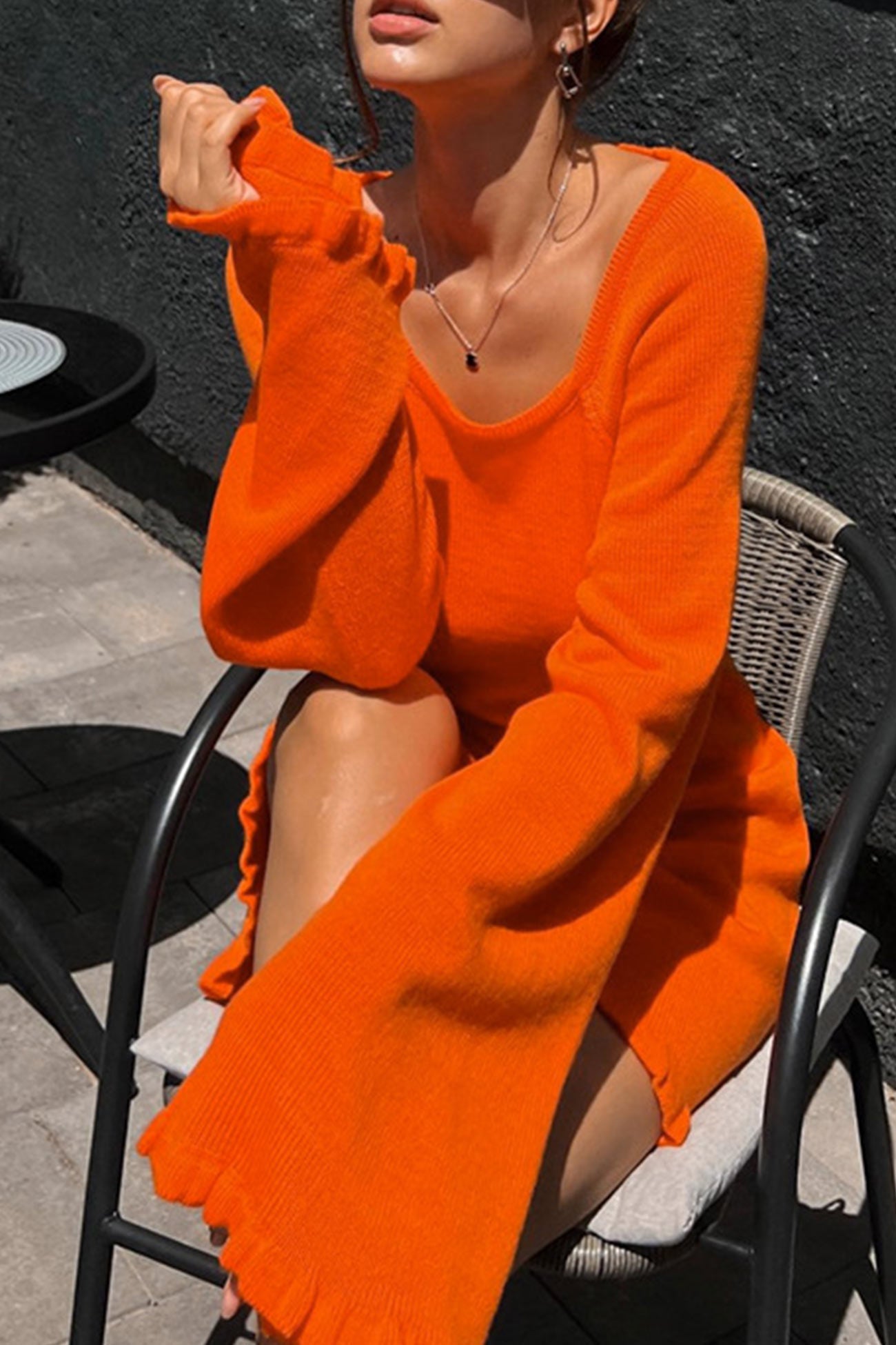 BXOXO - Flares Sleeve Tie-back Ruffle Hem Knit Dress