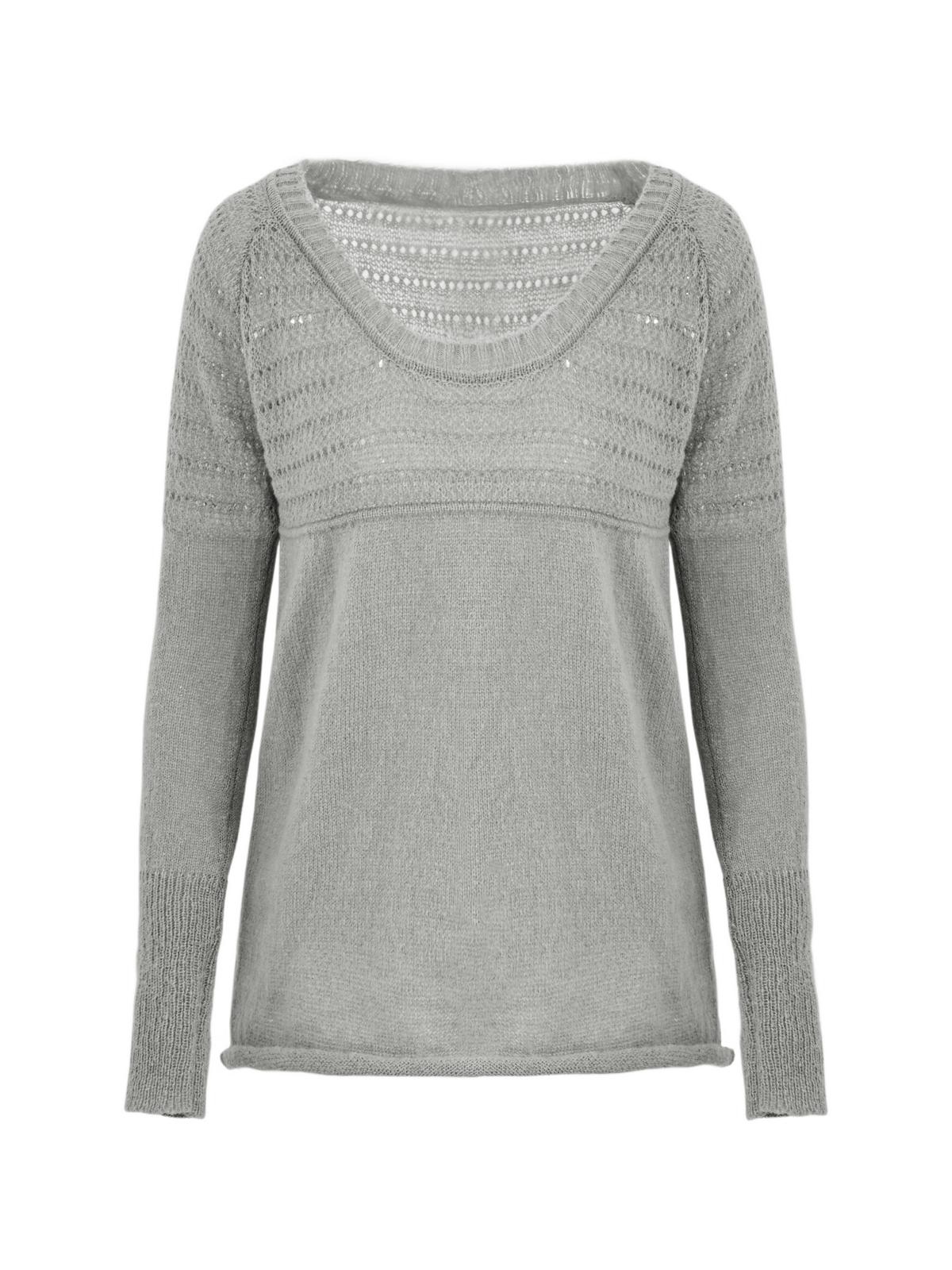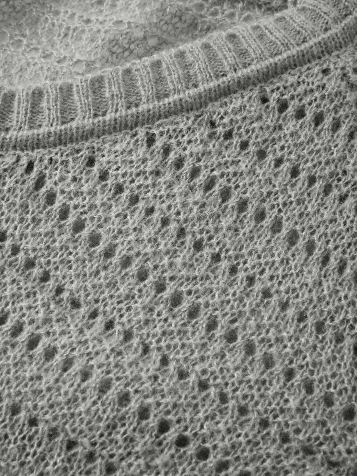 Description: This 90s nostalgia-vibe knitwear is a perfect option for fall. Crafted from acrylic knit fabric. cuts to a slim fitting style with a longline fit. features crochet hollow out design and roll hem detailing.