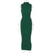 High Neck Lace Up Side Solid Waffle Sleeveless Midi Dress