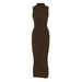 • High Neck Lace Up Side Solid Waffle Sleeveless Midi Dress