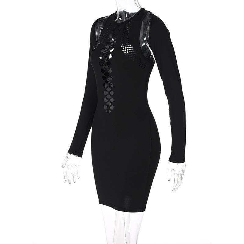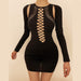 Hollow Out Crewneck Long Sleeve Cut Out Mini Dress