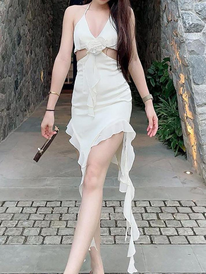 Hollow Out Tie-up Halterneck Sleeveless Dress