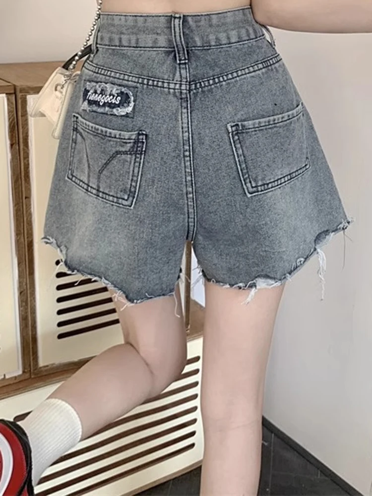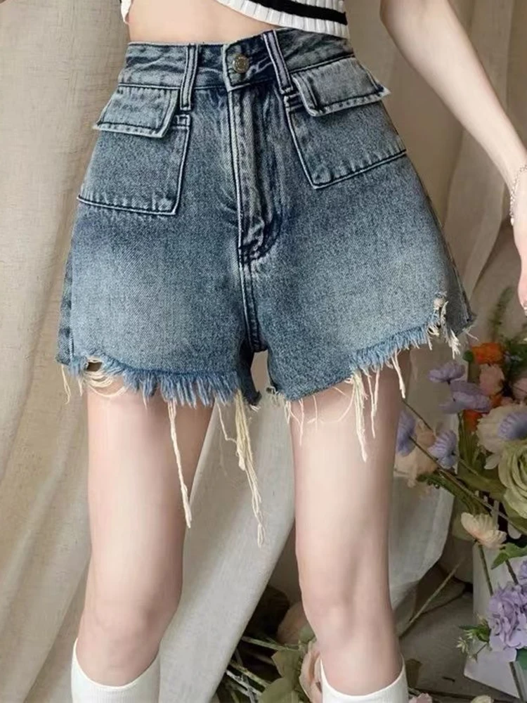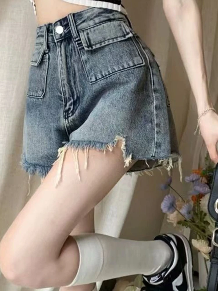 Ins Lady High Waist Denim Wide Leg Shorts Girls Trashy Y2k 2000s Short Ripped Pants Female Blue Korean Loose Hot Jeans Plus Size