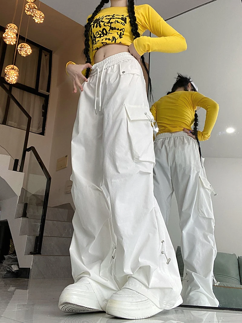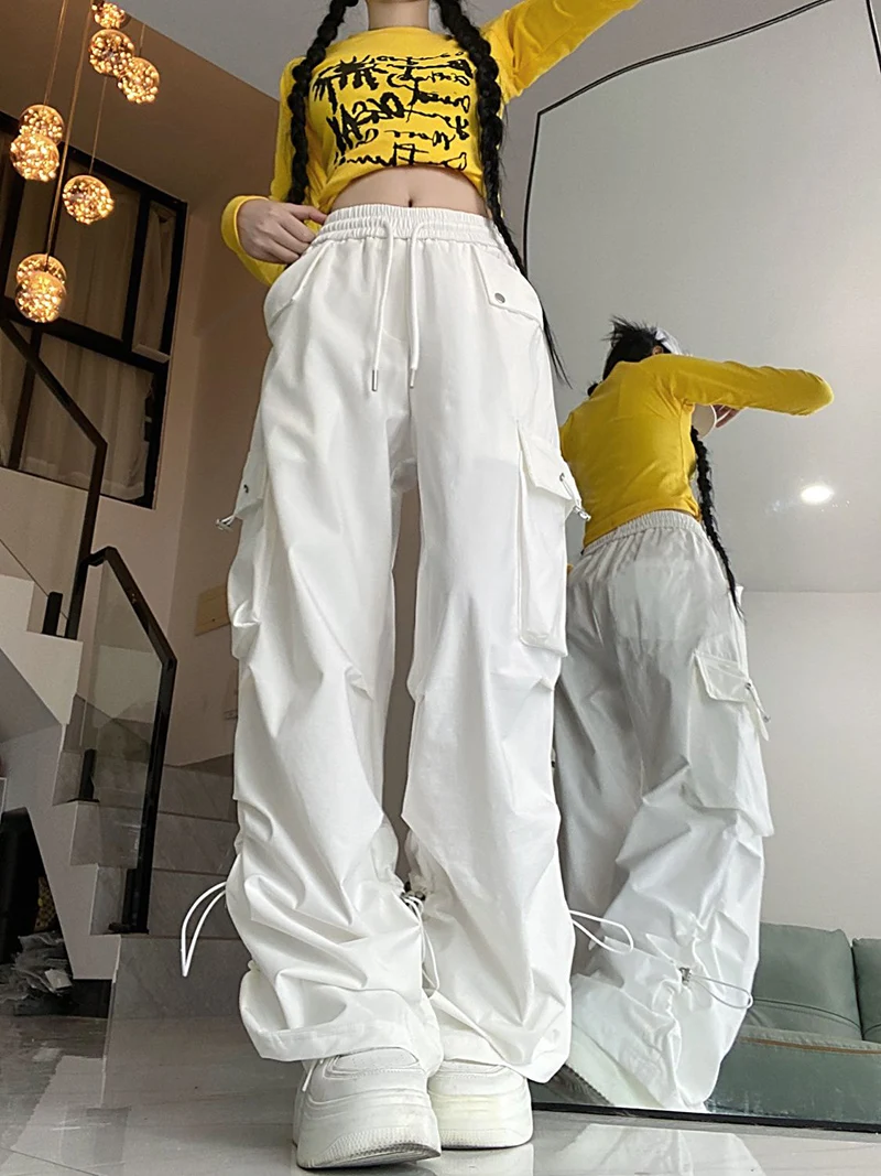 Y2K American Retro Cargo Pants Women High Waist Hip Hop Trousers Vintage Harajuku Bf Streetwear Loose Pockets Casual Pants