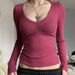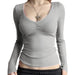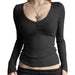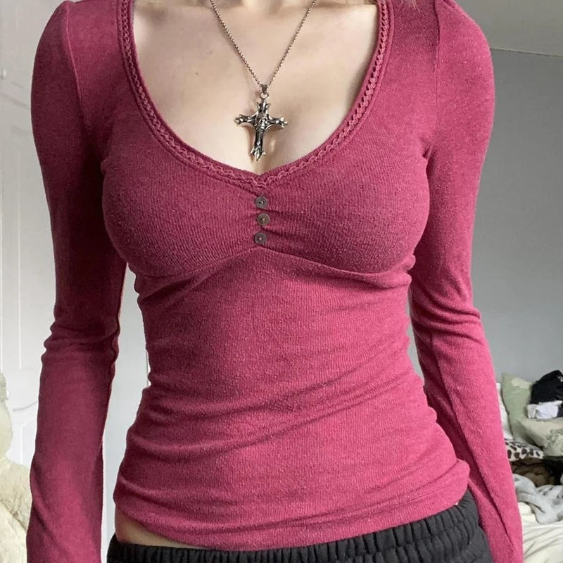 Kawaii Fairy Grunge Button V Neck Slim Tees Cottage Vintage Long Sleeve Crop Tops y2k Aesthetic 00s Retro T-shirt Women Clothes