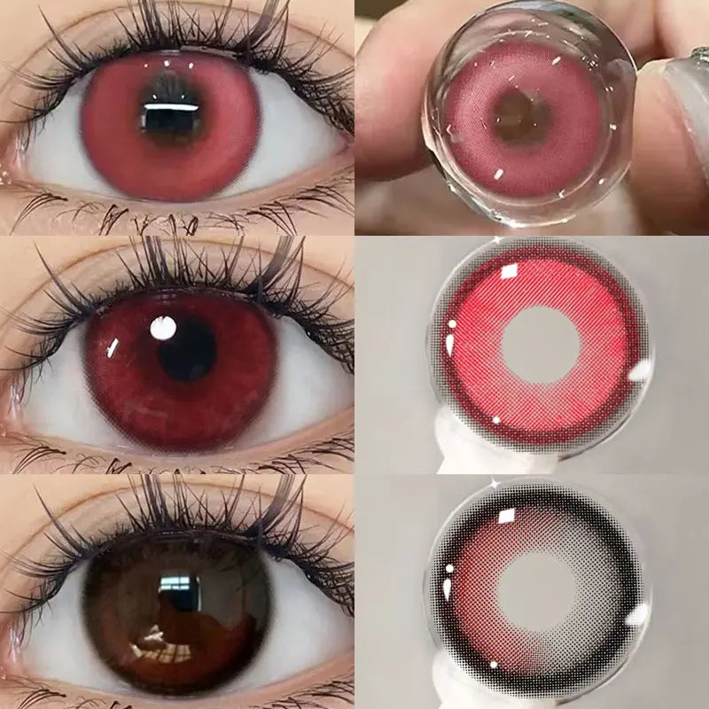 1Pair Red Colour Contacts Lenses Prescription Myopia Halloween Red Eye Lenses Beauty Pupil Makeup Lenses
