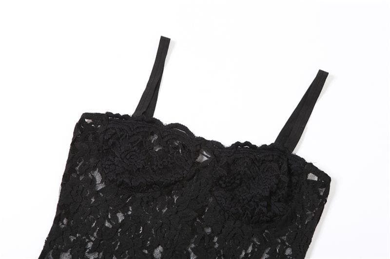 • Lace Solid Zip-Up See Through Sleeveless Backless Maxi Dress