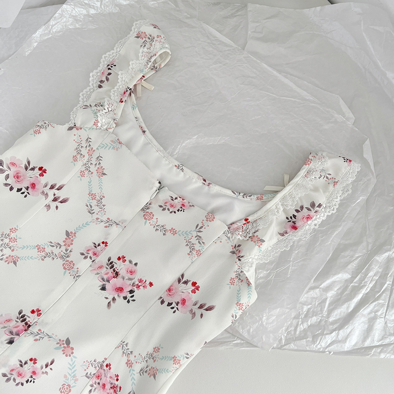 BXOXO - summer inspo Lace Sweet Dress Women Vintage Sleeveless Elegant Cute Mini Dress Female Print Korean Fashion Suspender Dress 2025 Summer New