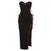 • Lace Up Contrast Irregular Slit Sweetheart Neck Midi Dress