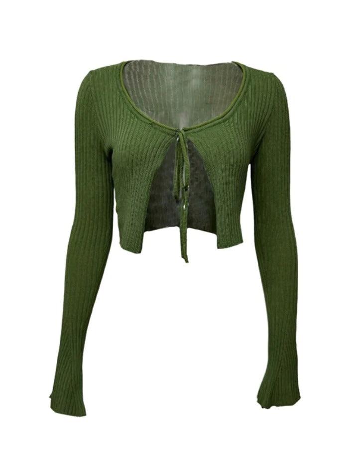 Unique Design: Elevate your fashion game with this lace-up women's cardigan crop top. Its bell sleeves and lace-up front make it truly unique and playful.