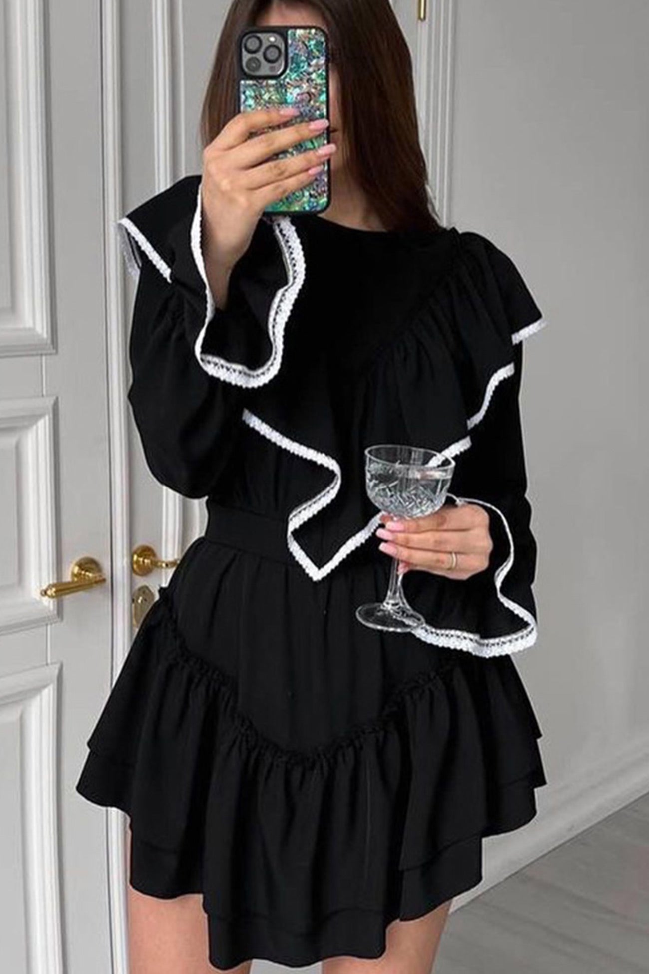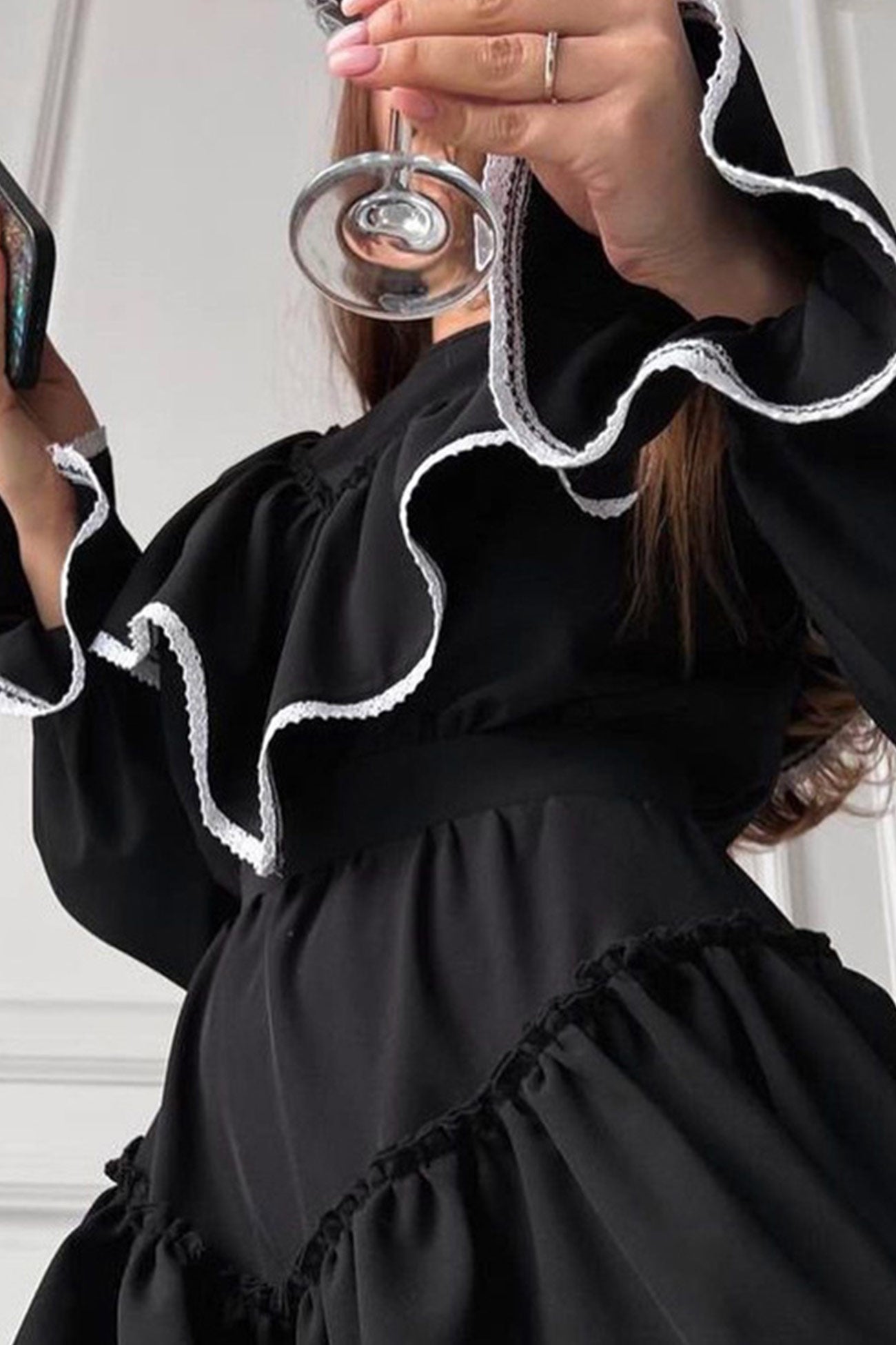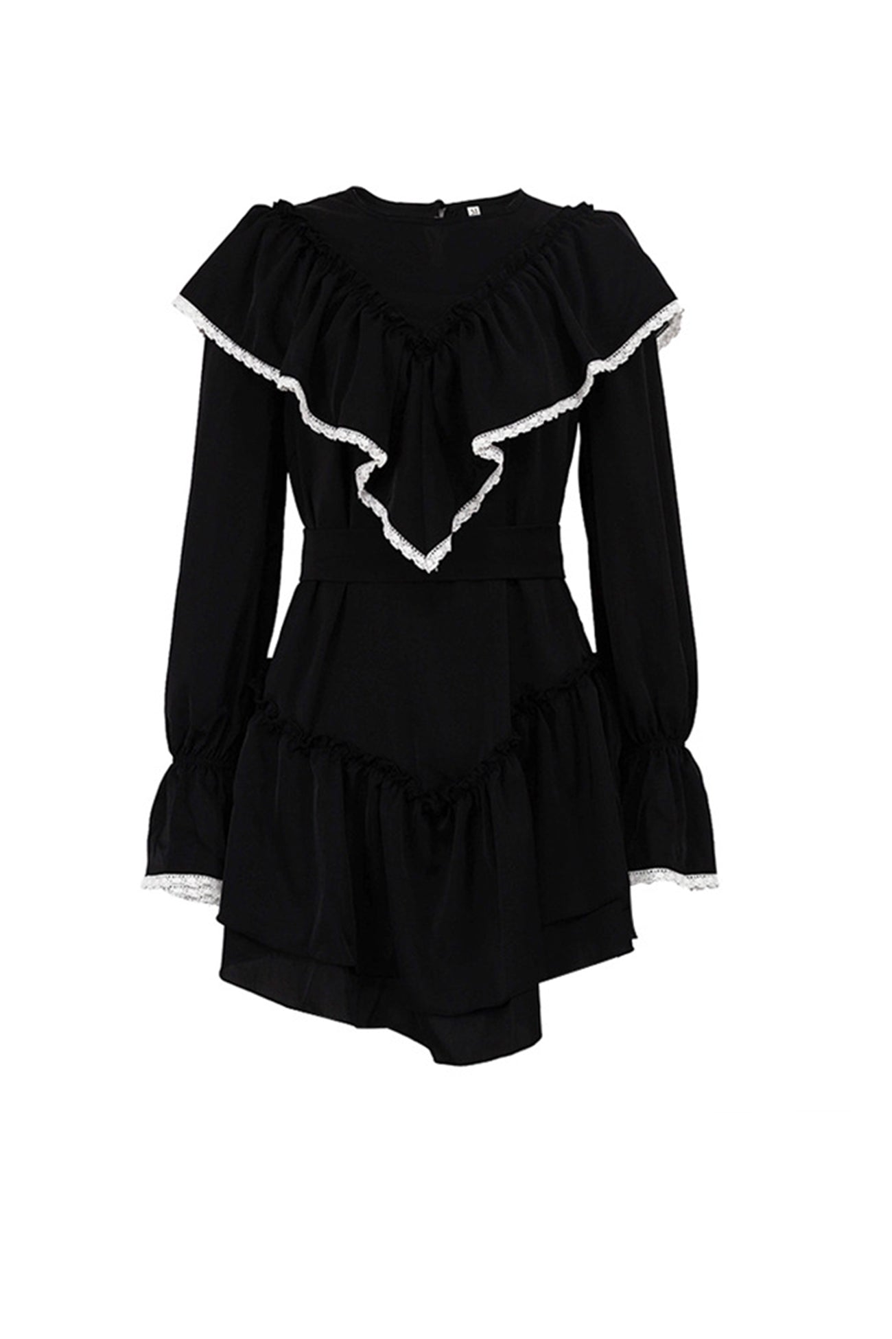 BXOXO - Lacework Ruffle Neck A-line Dress
