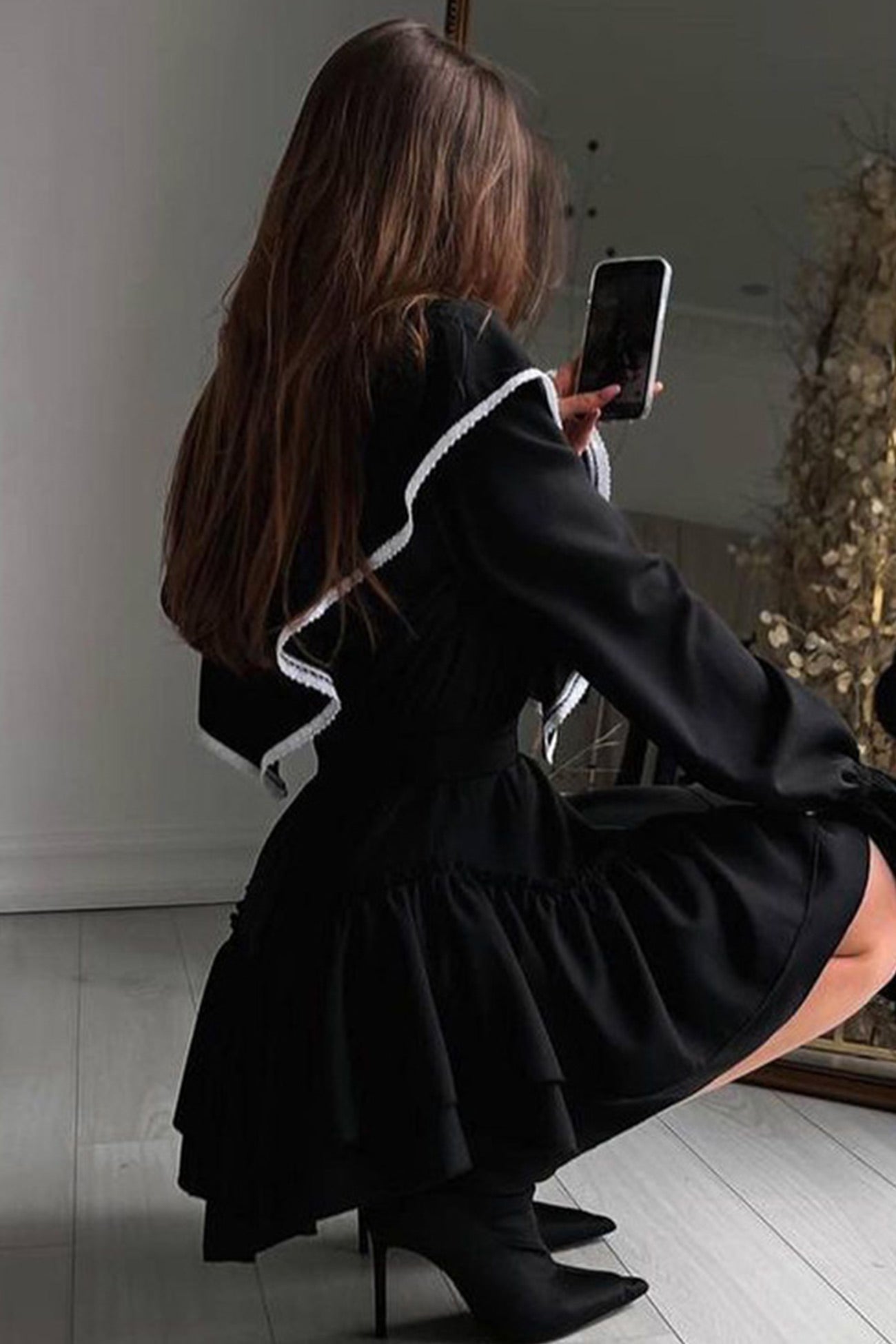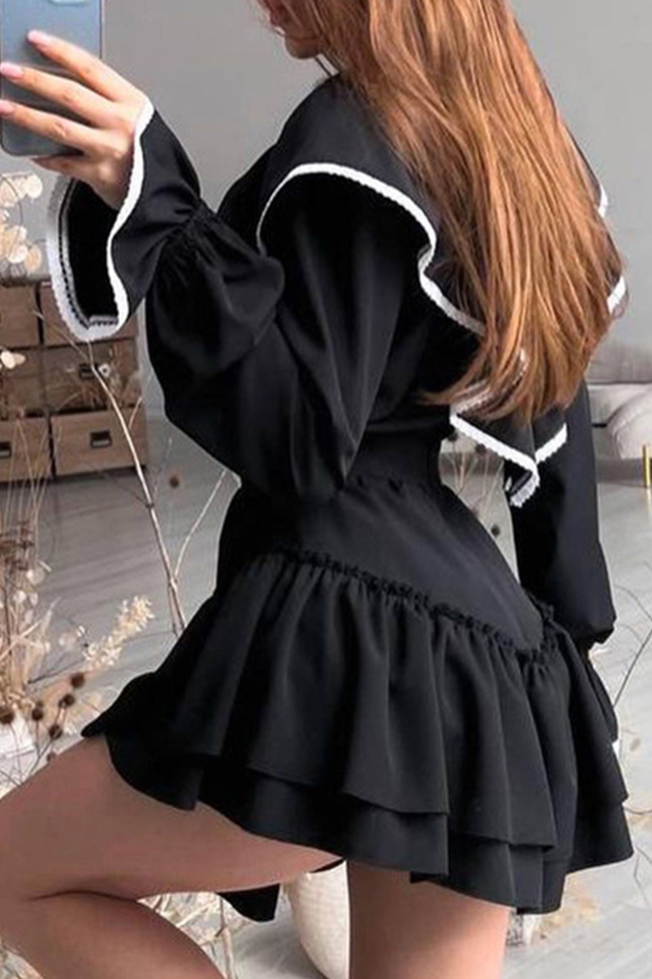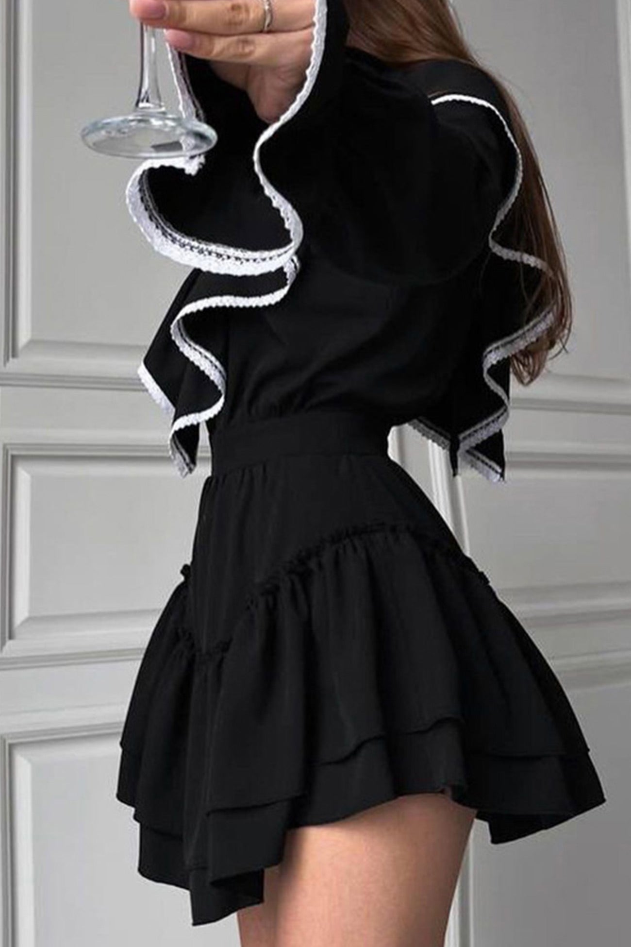 BXOXO - Lacework Ruffle Neck A-line Dress