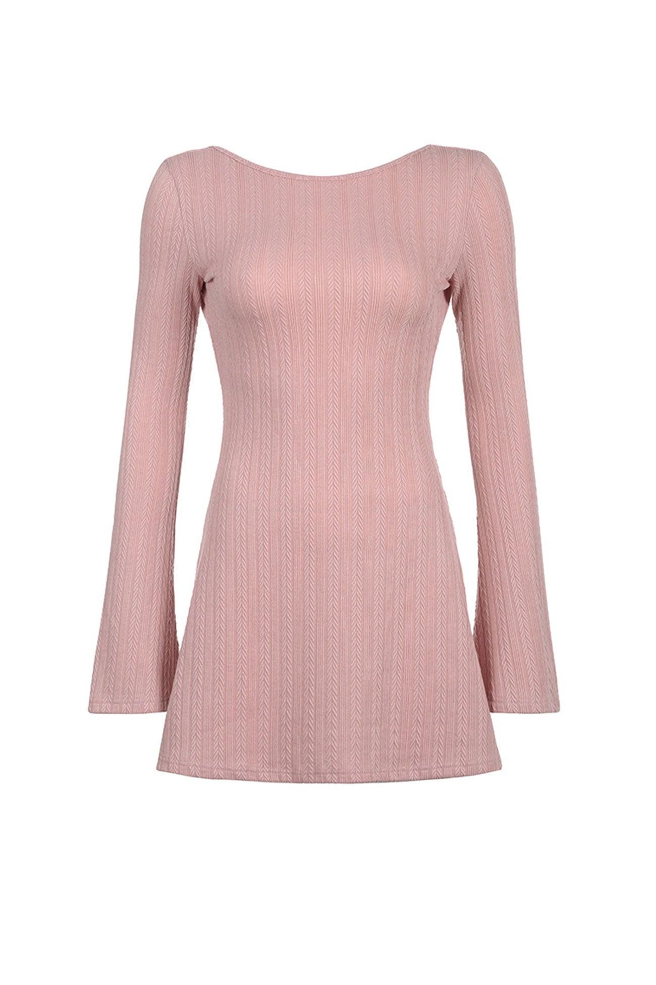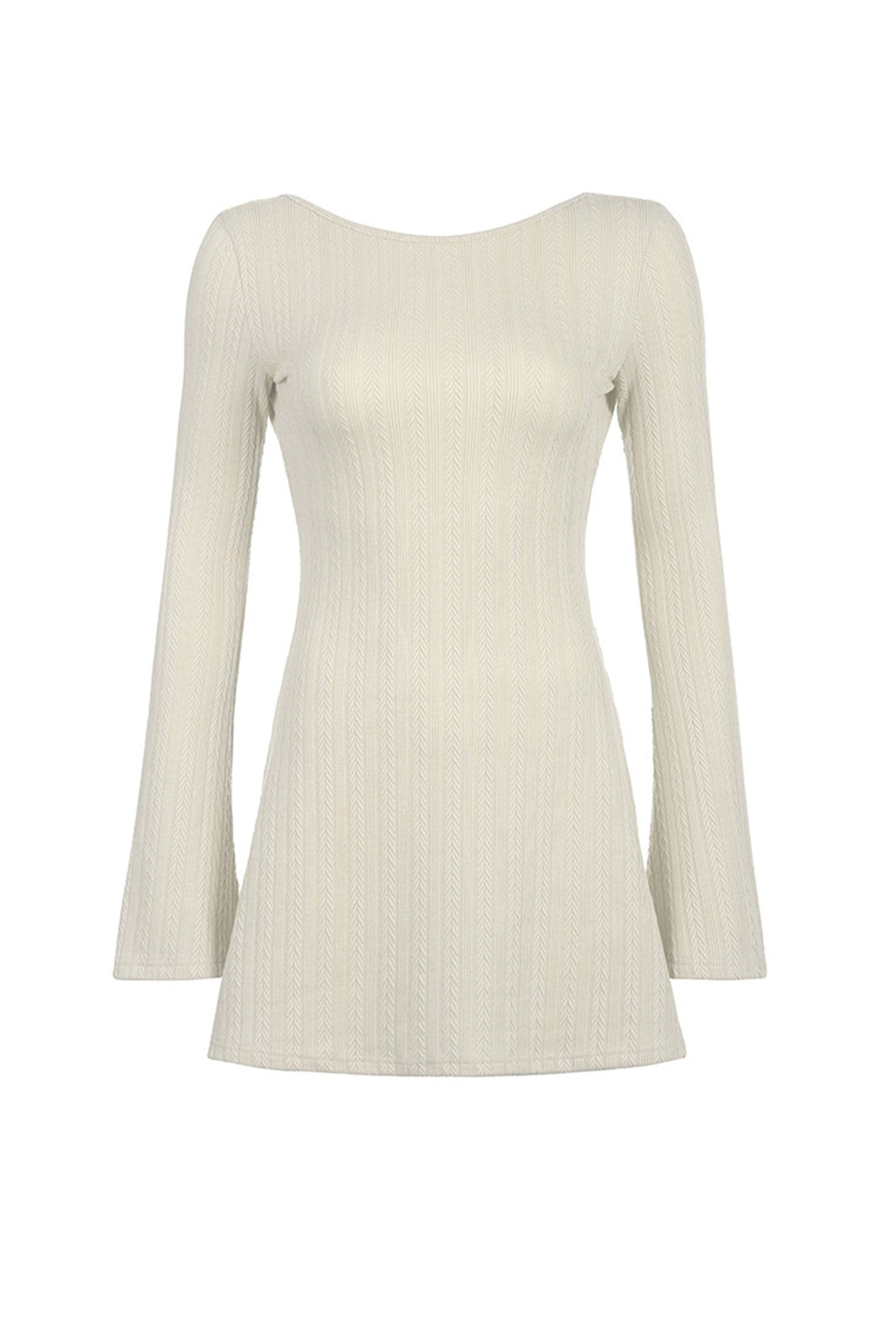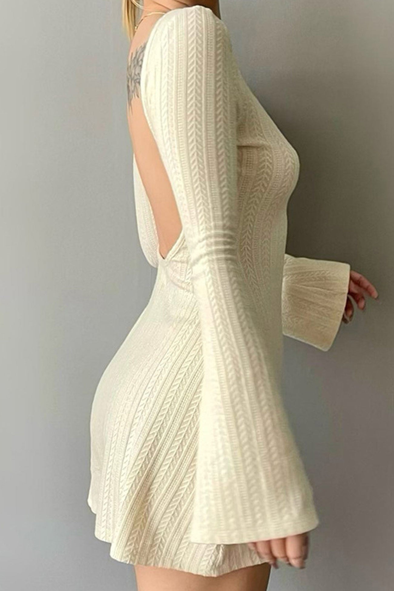 BXOXO - Long Flares Sleeve Backless Cable Knit Dress