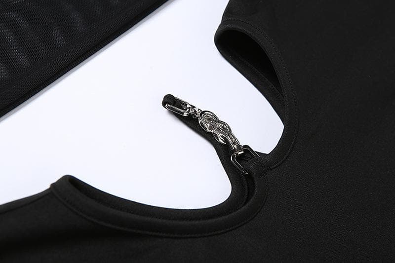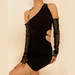 • Long Mesh Sleeve Off Shoulder Hollow Out Irregular Dress