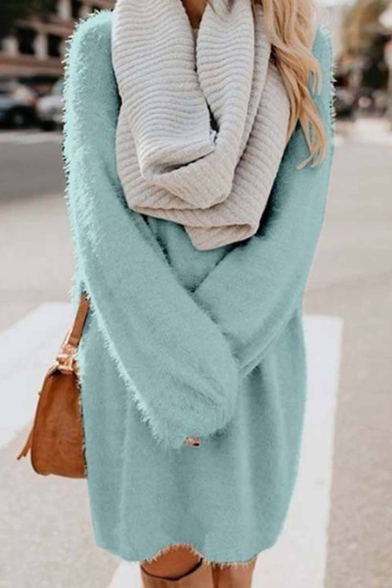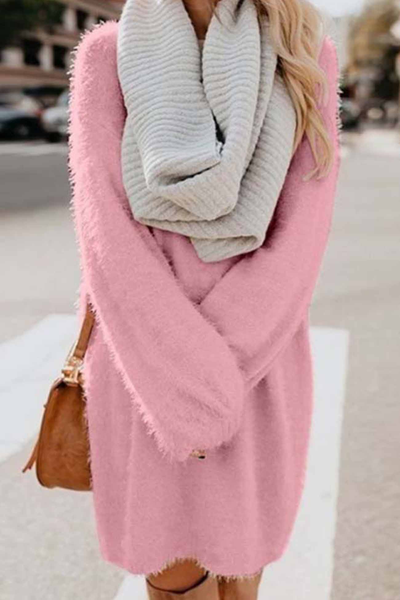 BXOXO - Long Sleeve Crew Neck Plush Dress