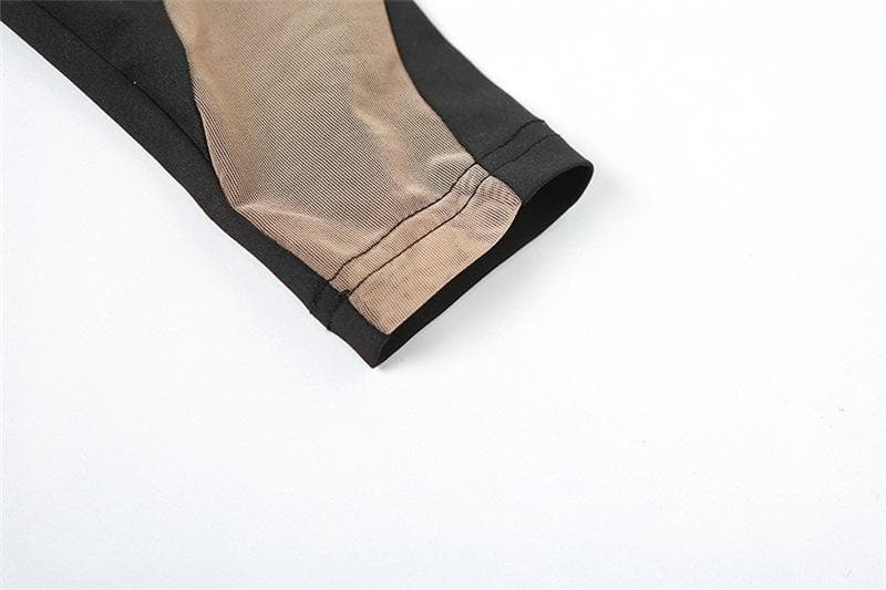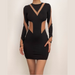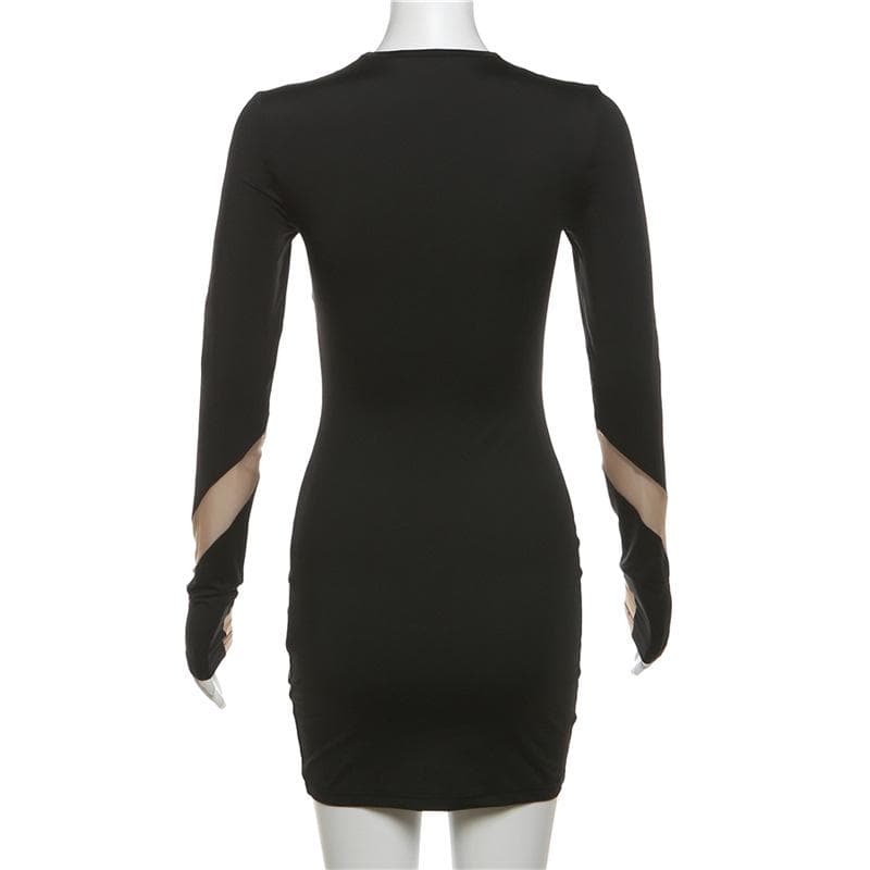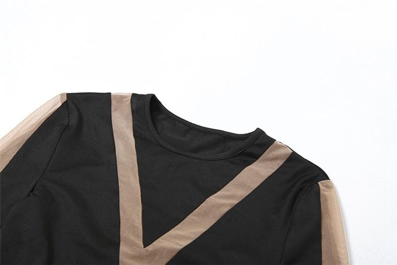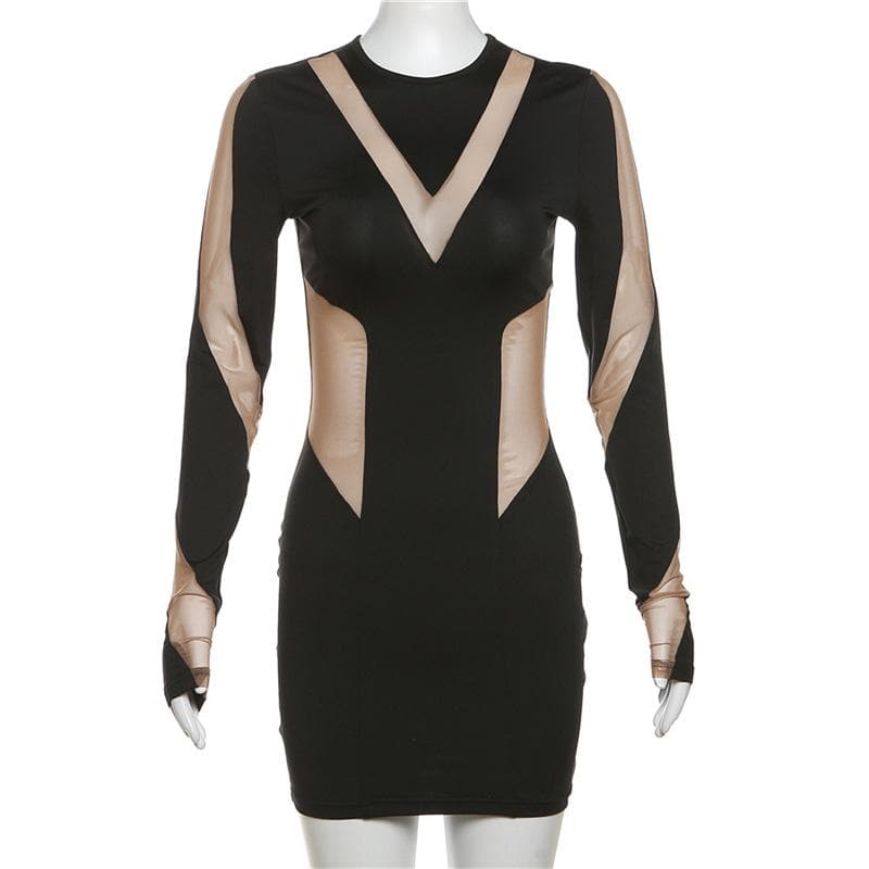 Long Sleeve Crewneck Mesh Patchwork Contrast Mini Dress