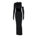 Long Sleeve Gloves Irregular Hollow Out Crewneck Cut Out Maxi Dress