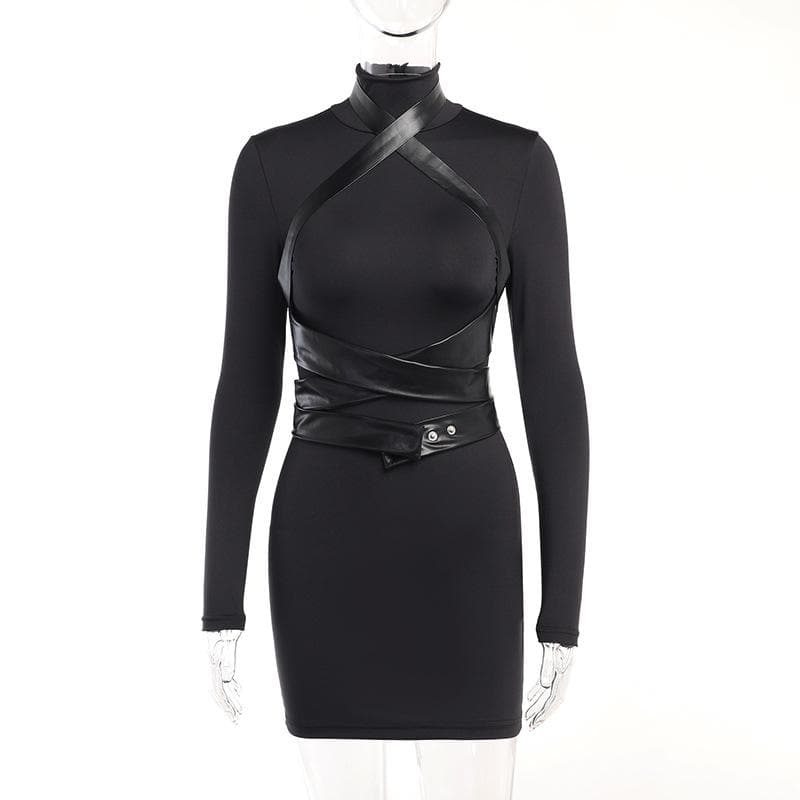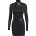 Long Sleeve High Neck Cross Front Button Zip-Up Mini Dress