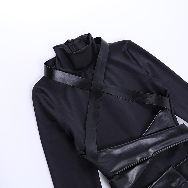 • Long Sleeve High Neck Cross Front Button Zip-Up Mini Dress