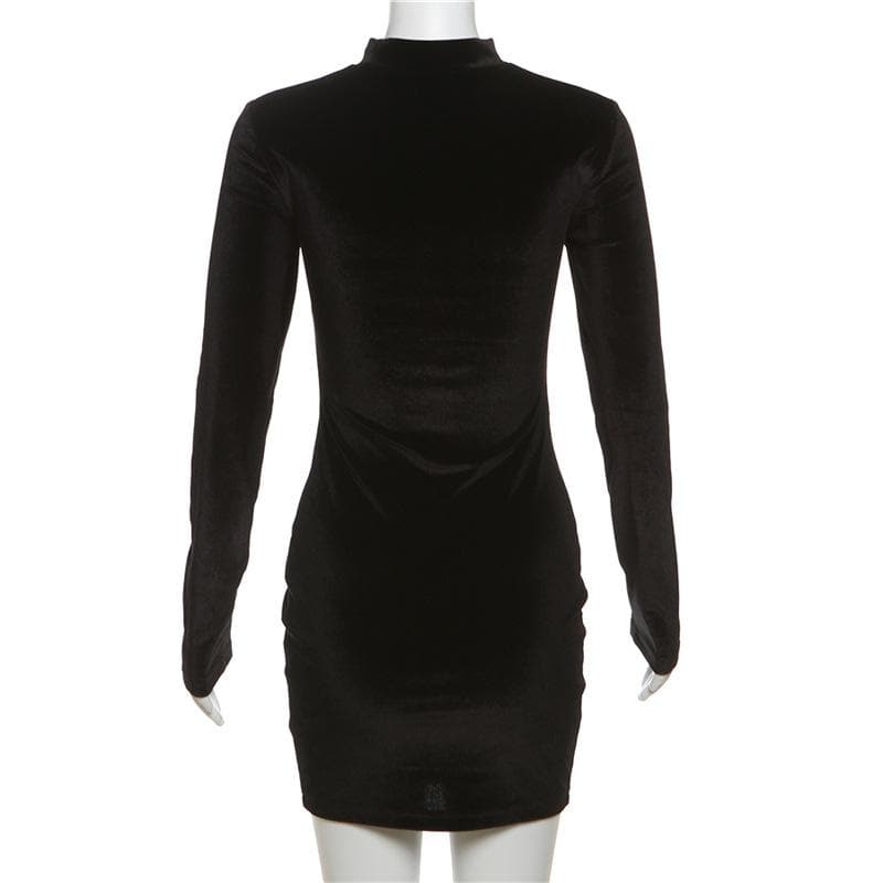 Long Sleeve High Neck Velvet Patchwork Mesh Mini Dress