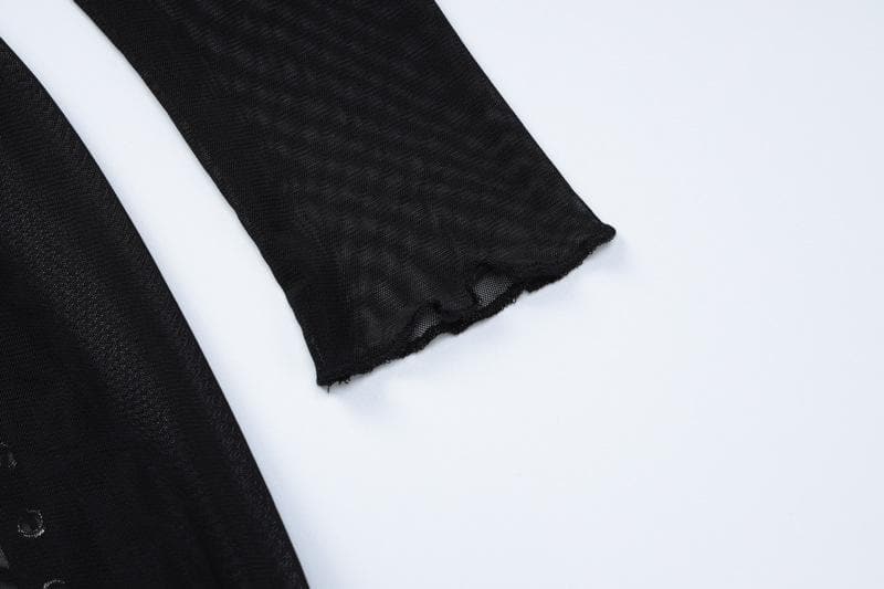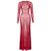 • Long Sleeve Lace Up Sheer Mesh See Through Maxi Dress