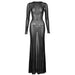 Long Sleeve Lace Up Sheer Mesh See Through Maxi Dress