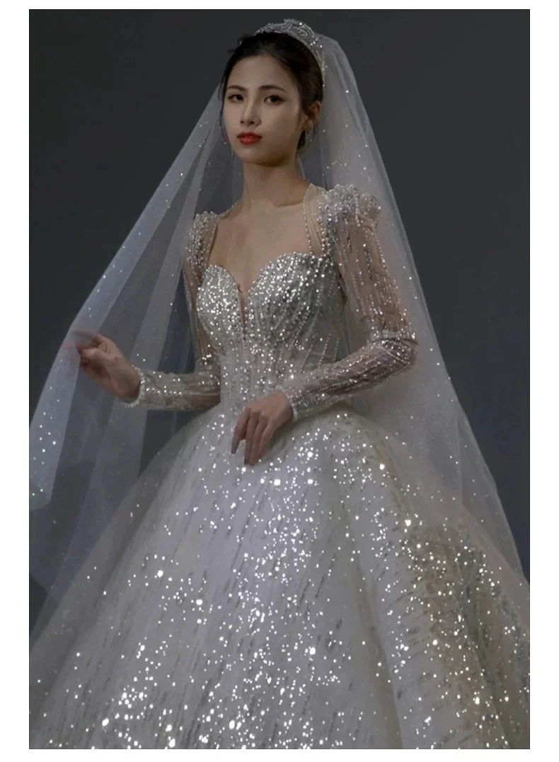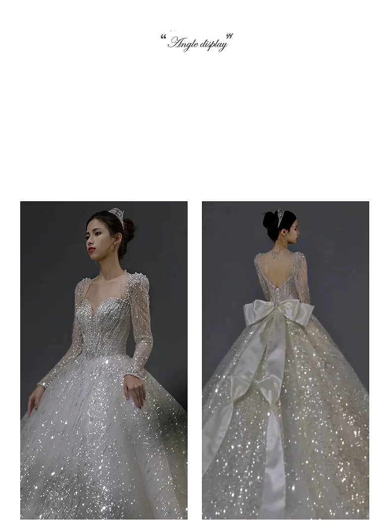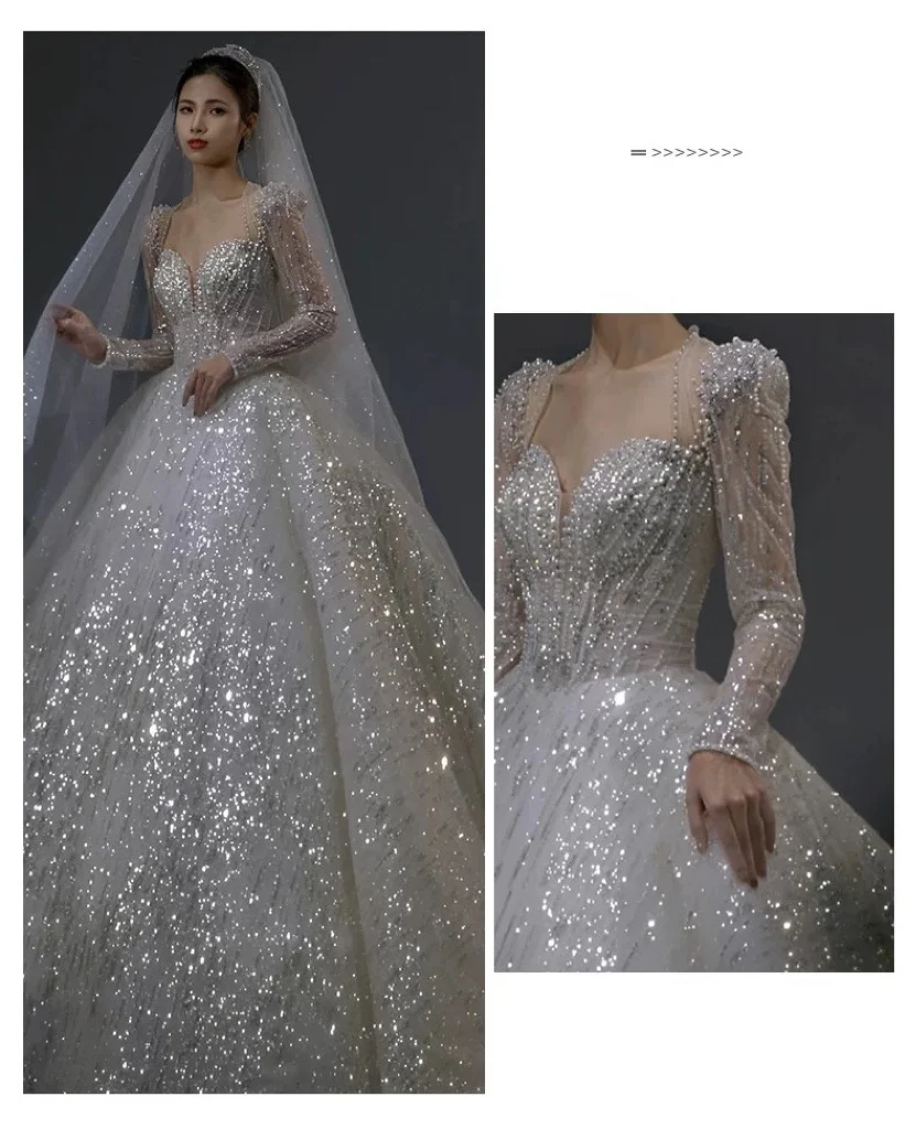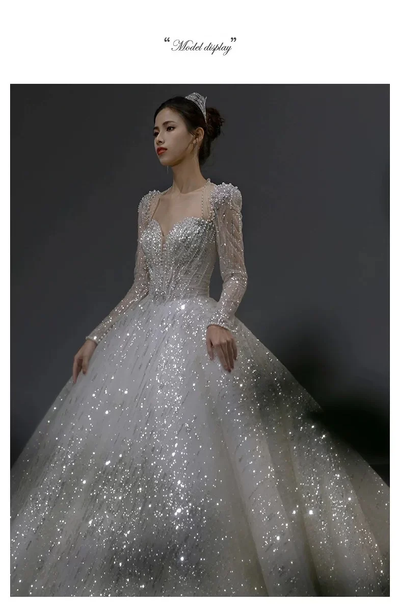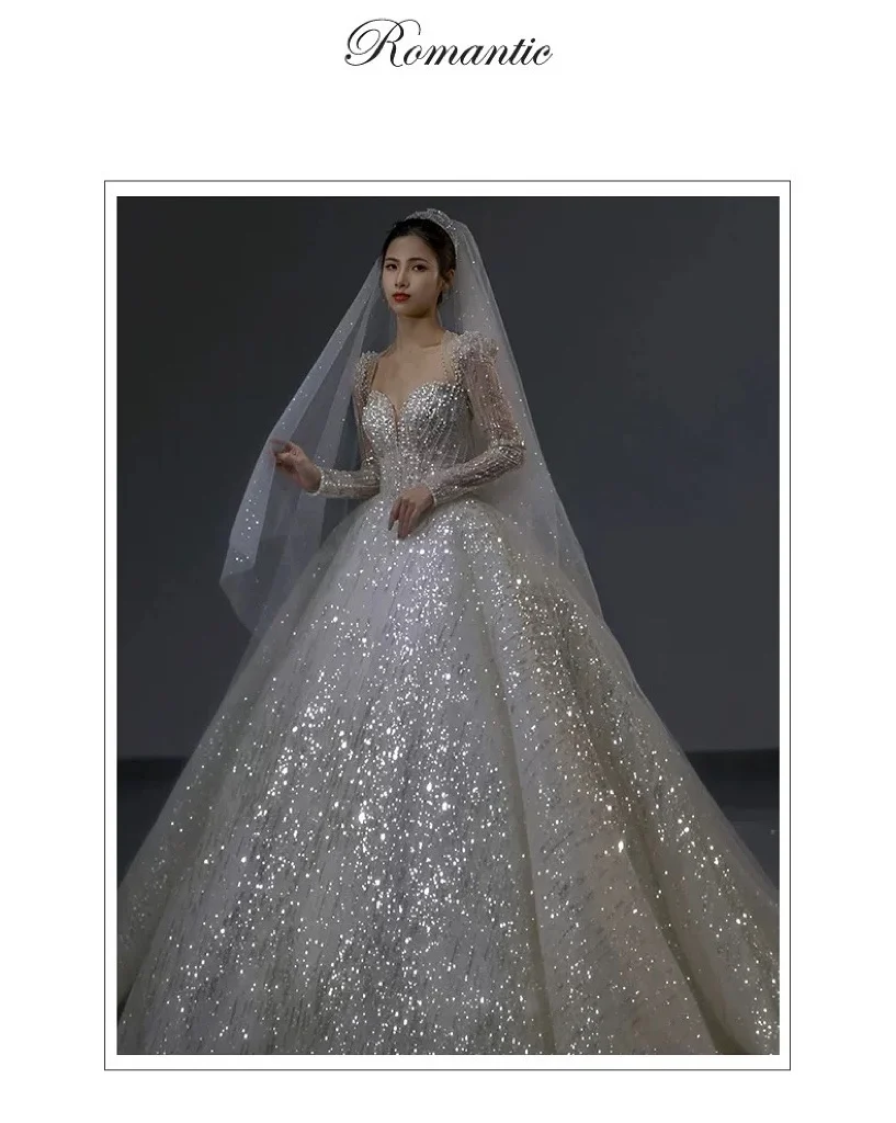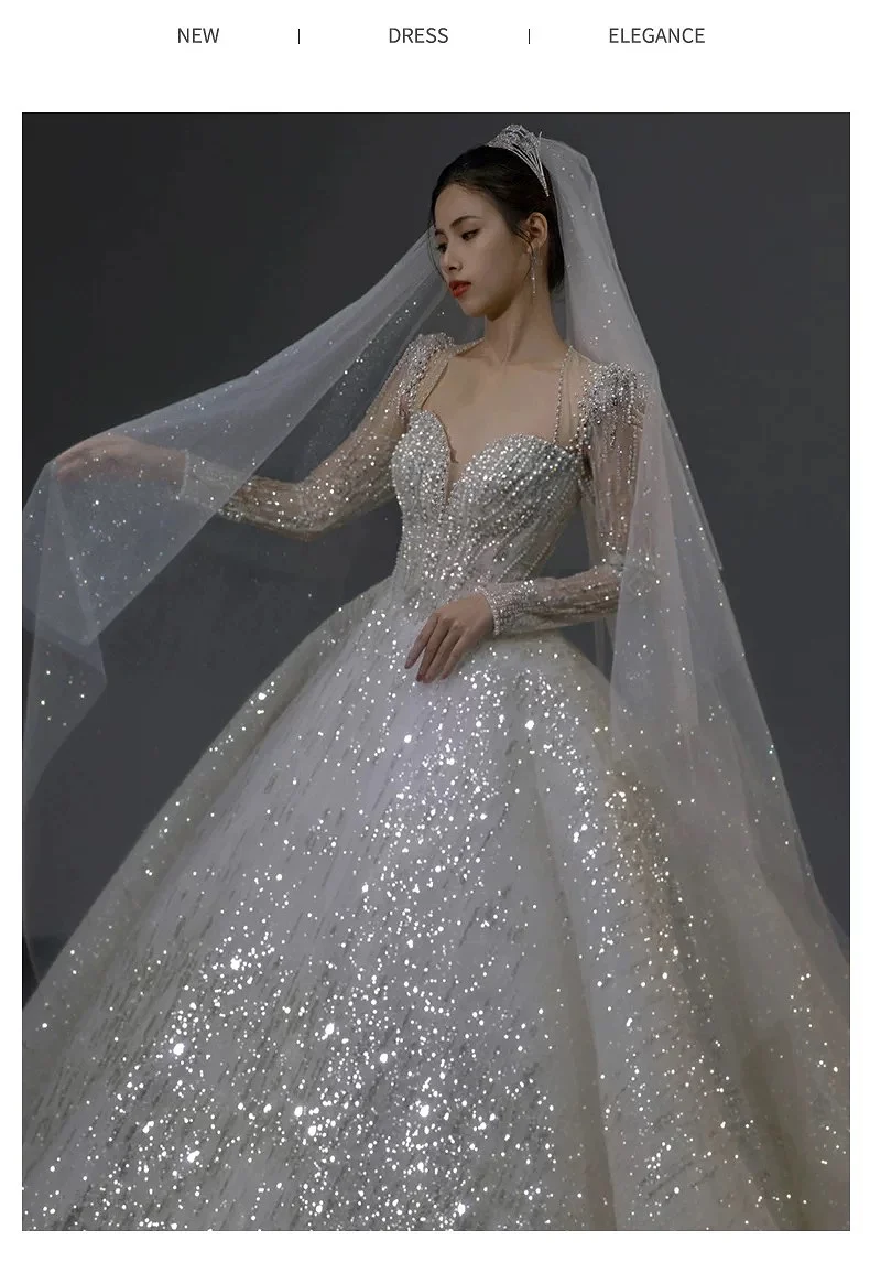 Luxury Sequined Wedding Dresses: Sweep Train Elegant Bridal Gowns