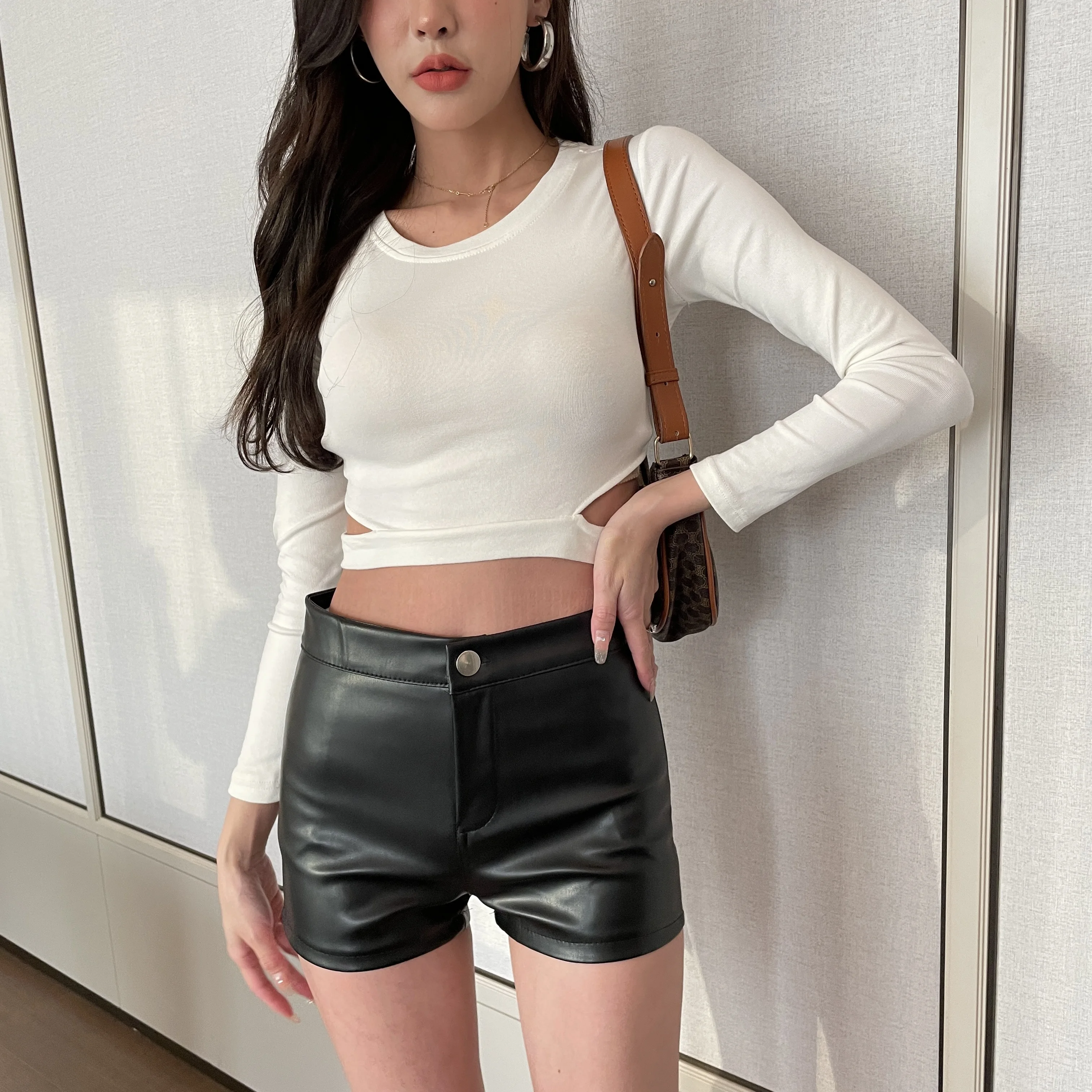 New Sexy Summer and Autumn Stretch Plus Size Tight Black Faux Leather Shorts Casual Shorts Leather Pants for Women