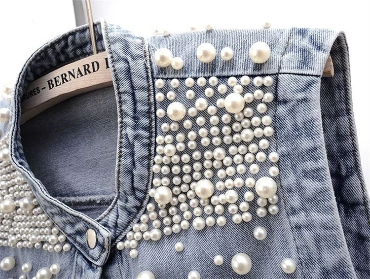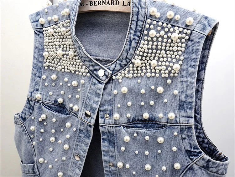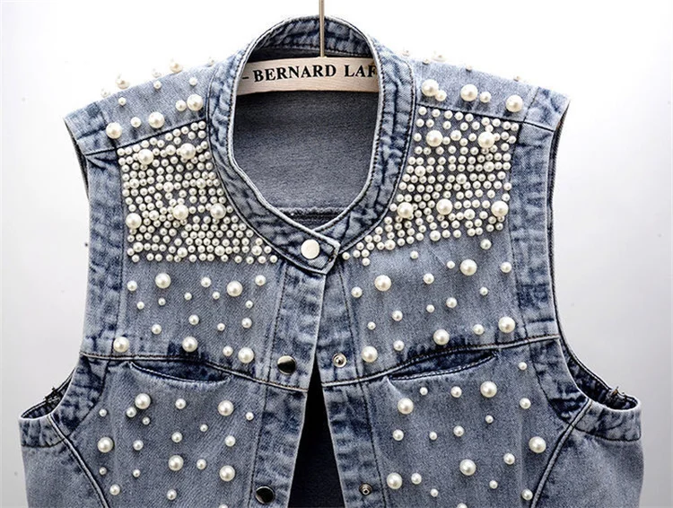 New Summer Women's Beaded Denim Tank Top Sleeveless Top Cutting Street Clothing Jeans Jacket Korean Fashion Tank Top