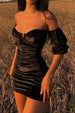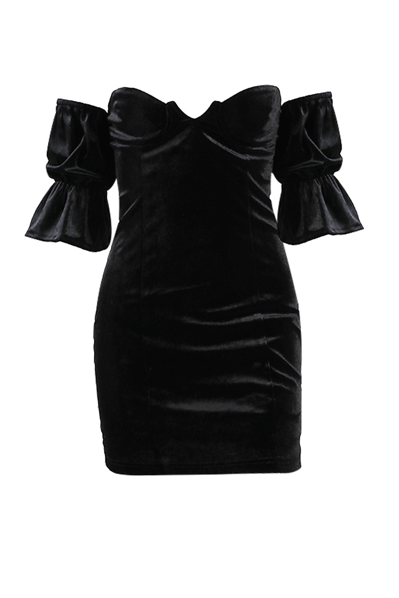 BXOXO - Off Shoulder Flares Sleeve Corset Velvet Dress