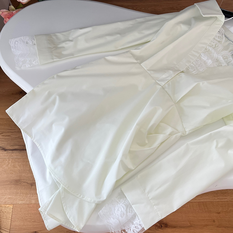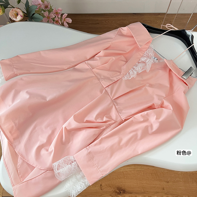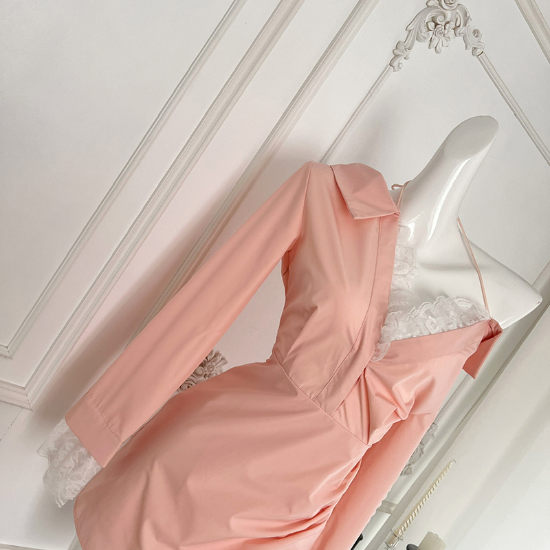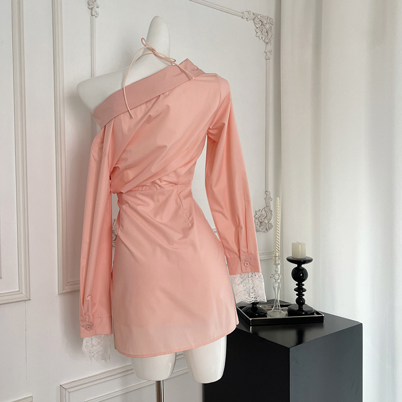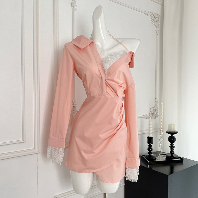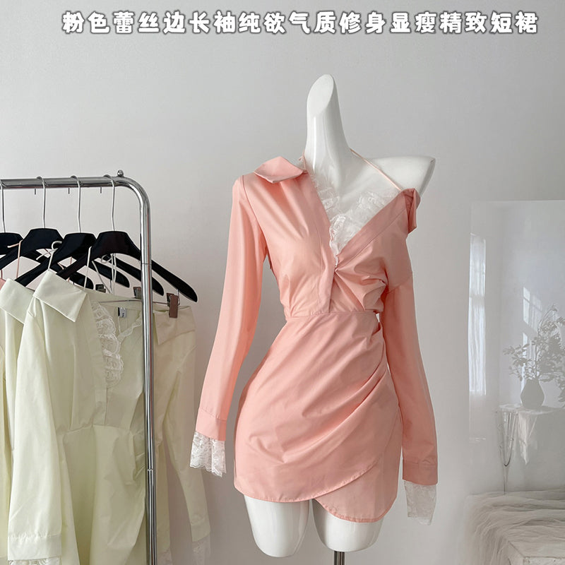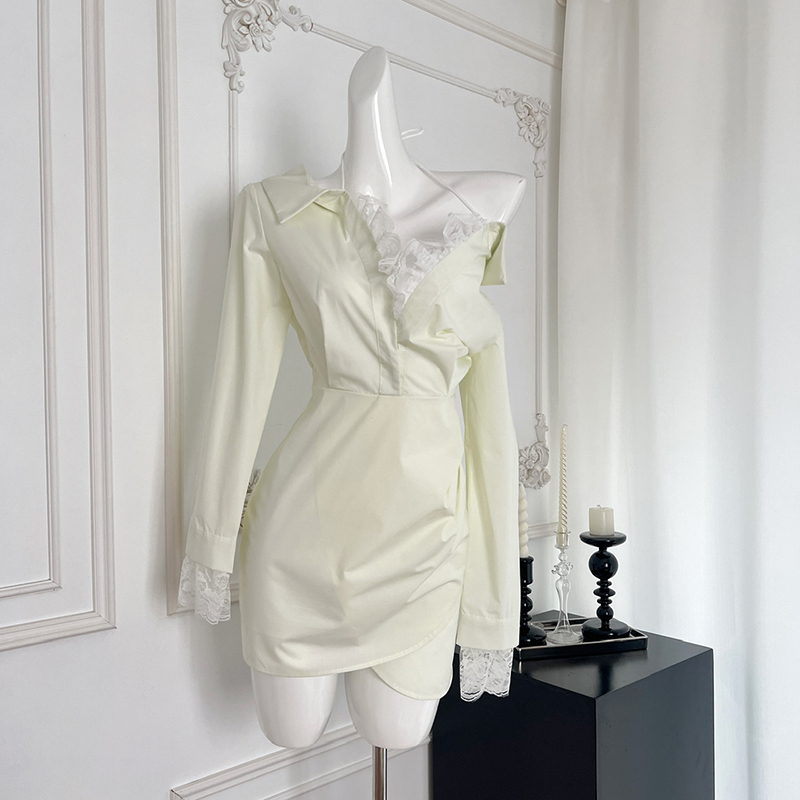 BXOXO - summer inspo Off Shoulder Long Sleeve Dress Women Autumn New Lace Splicing Shirt Dress Niche Design Korean Style Fashion Retro Dresses