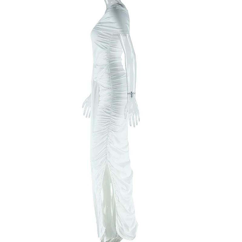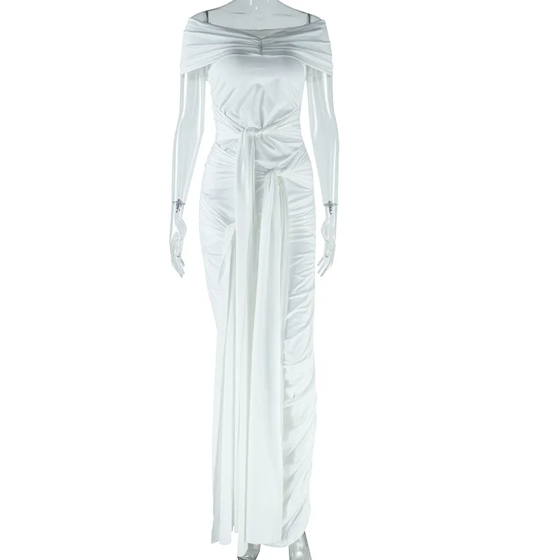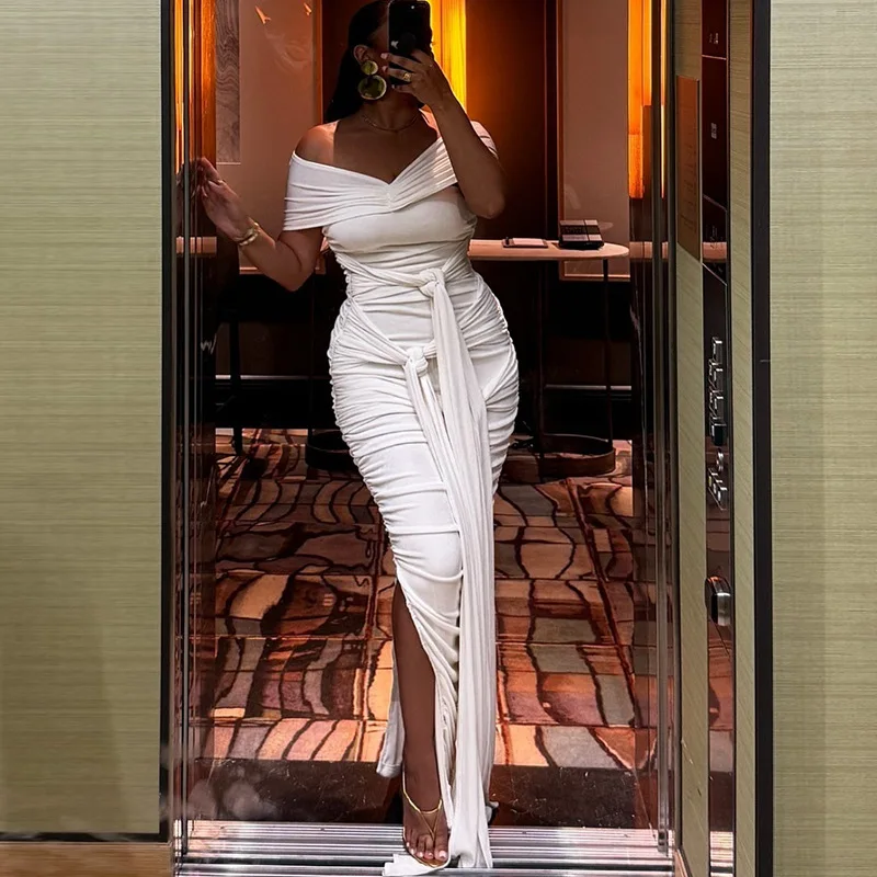 Off-Shoulder Maxi Dress For Women Backless Bandage Solid Bodycon High Slit Club Party Long Dress Elegant Female Evening Prom