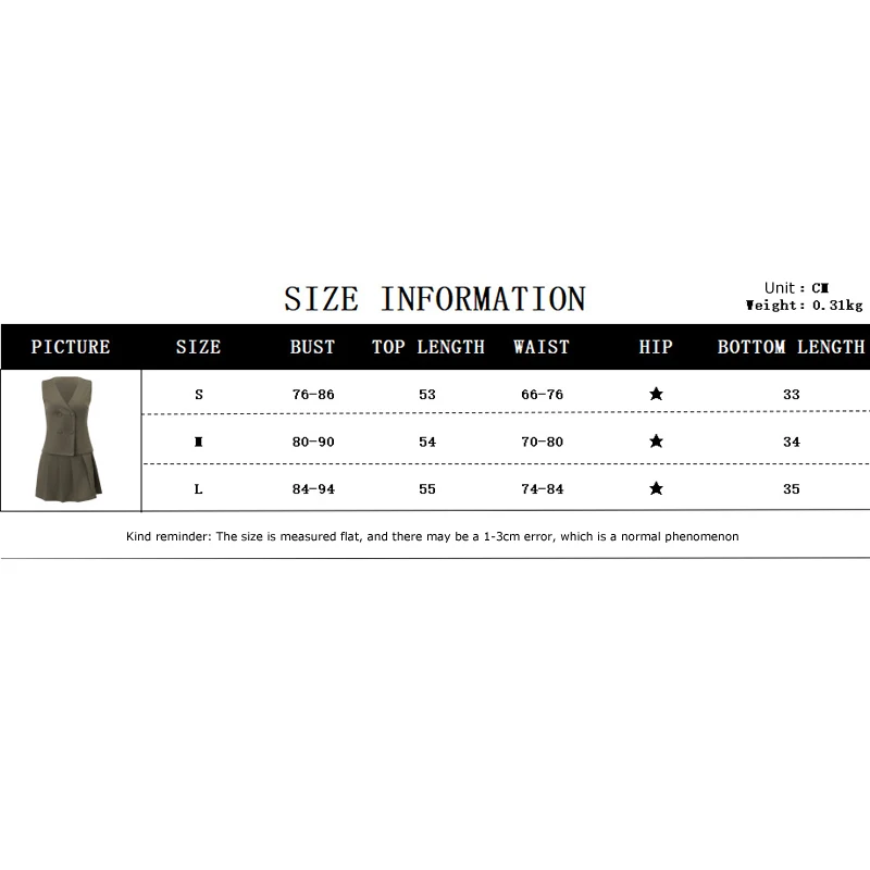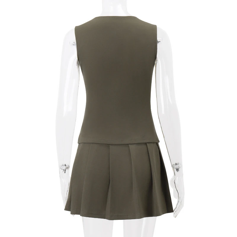Office Lady Elegant 2 Piece Set Vintage Sleeveless V Neck Button Closure Vest Tank Tops + Mini Pleated Skirt Women Summer Outfit