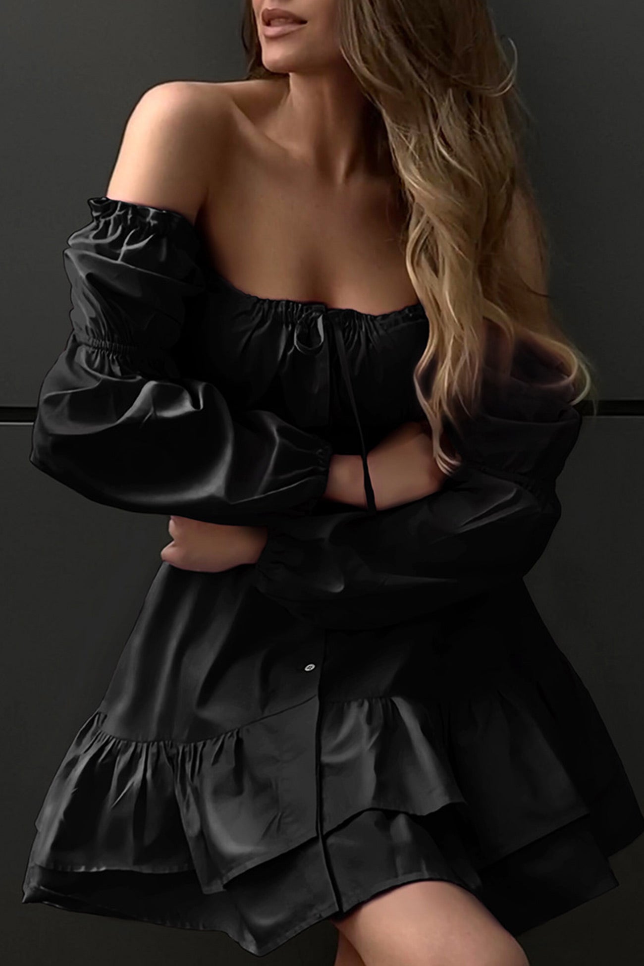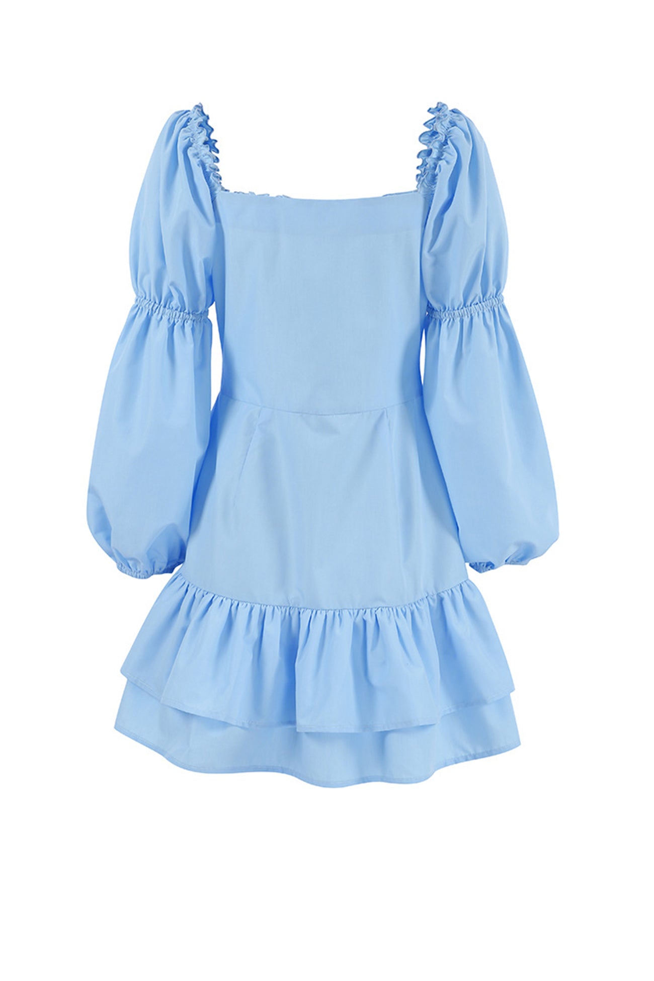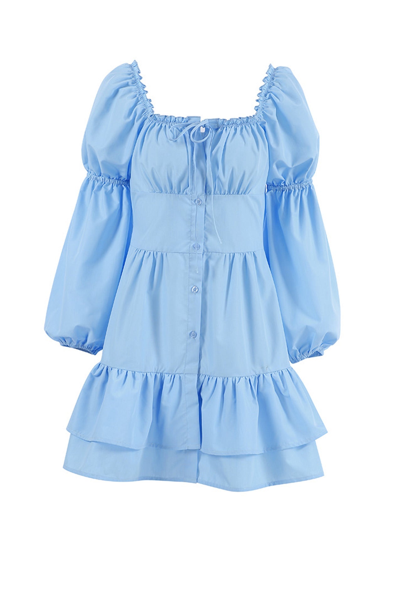 BXOXO - Puff Sleeve Single-breasted Ruffle Dress