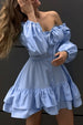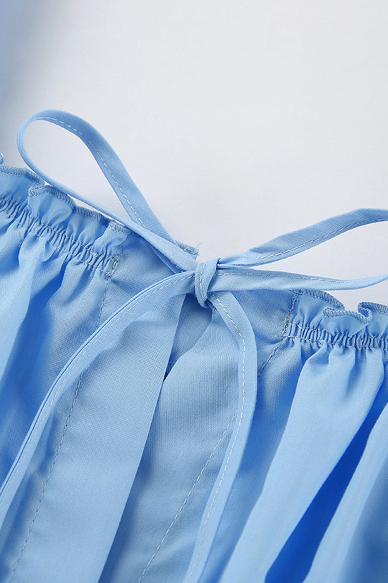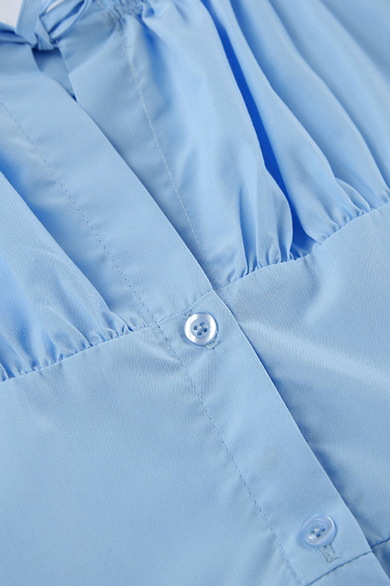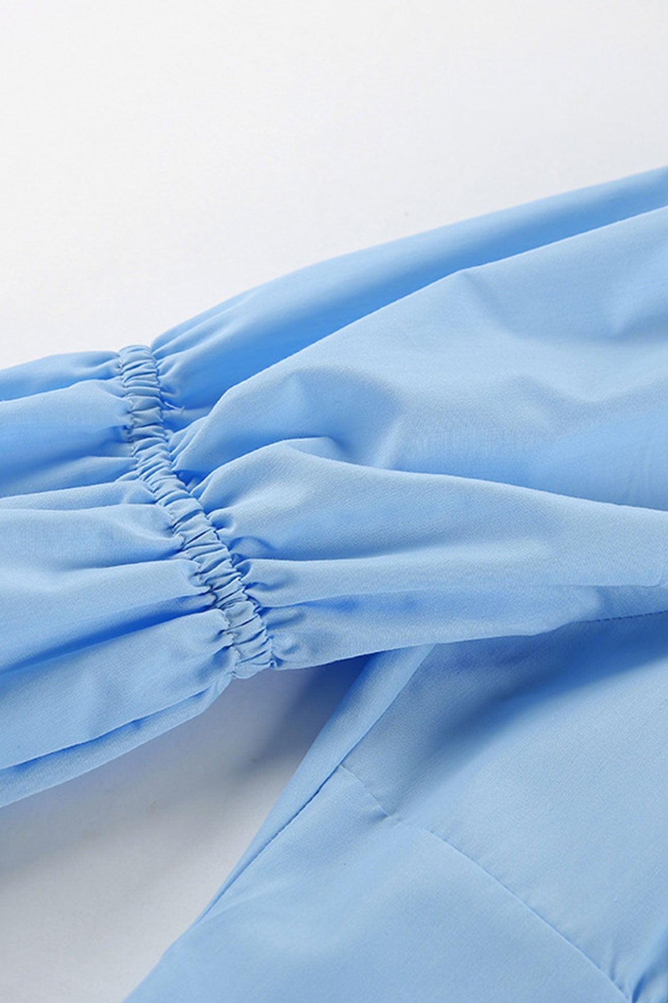 BXOXO - Puff Sleeve Single-breasted Ruffle Dress