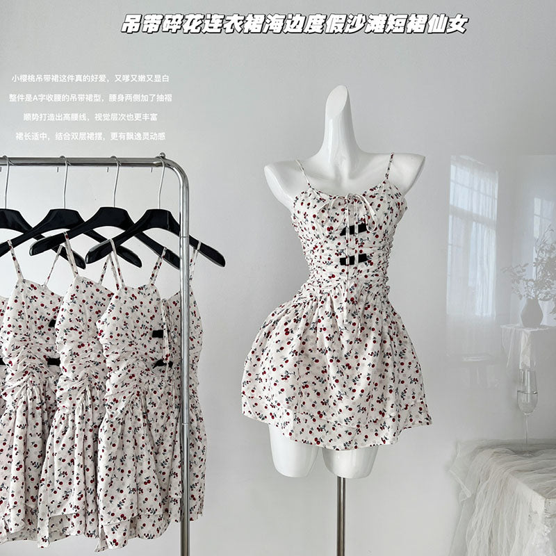 BXOXO - summer inspo Retro Floral Dresses Women Summer New Korean Style Fashion Casual Suspender Dress Sexy Sweet Princess Party Mini Dress