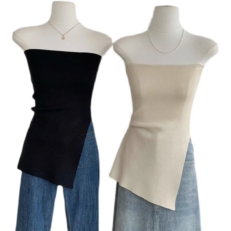 Ribbed Knit Tube Top Summer Strapless Casual Streetwear Long Bustier Tops For Women Hot Bandeau Tops Wrapped Corset