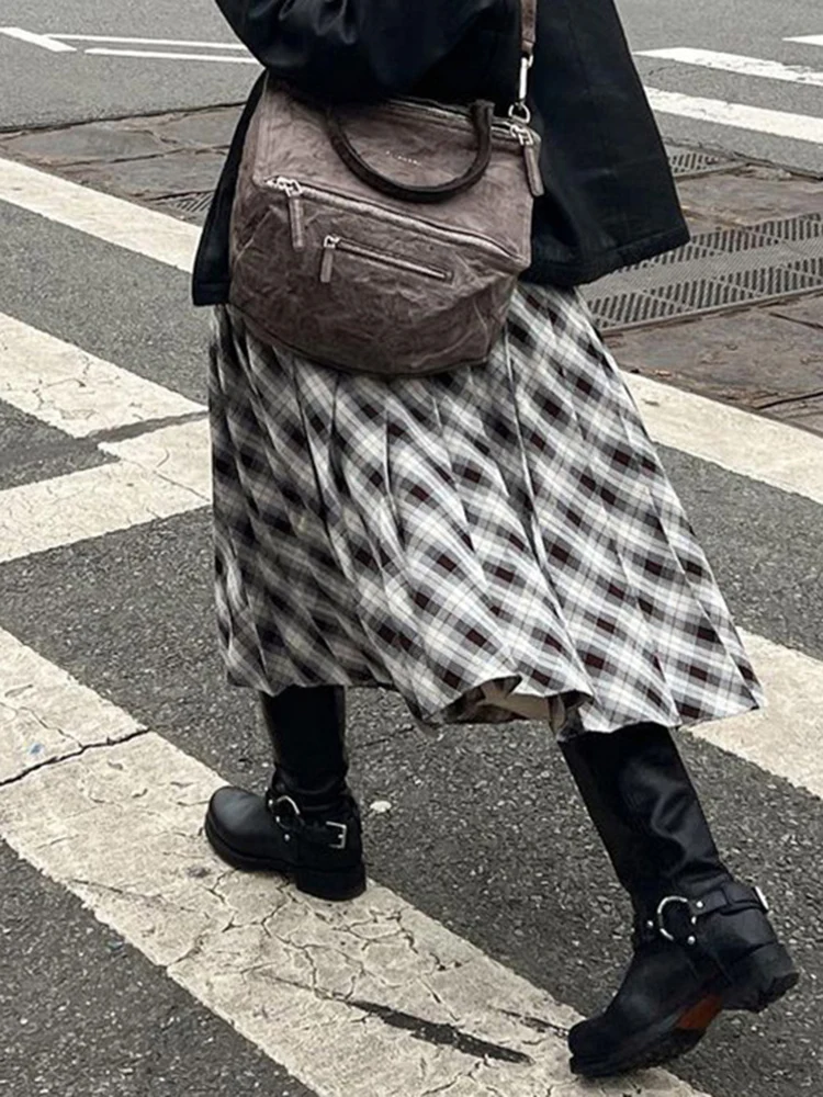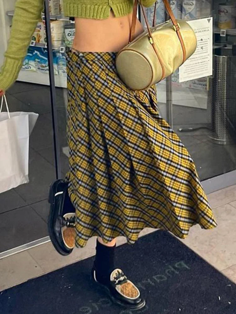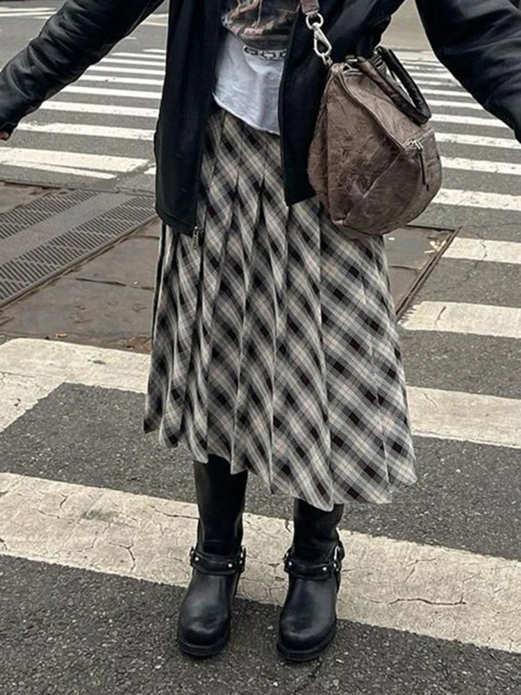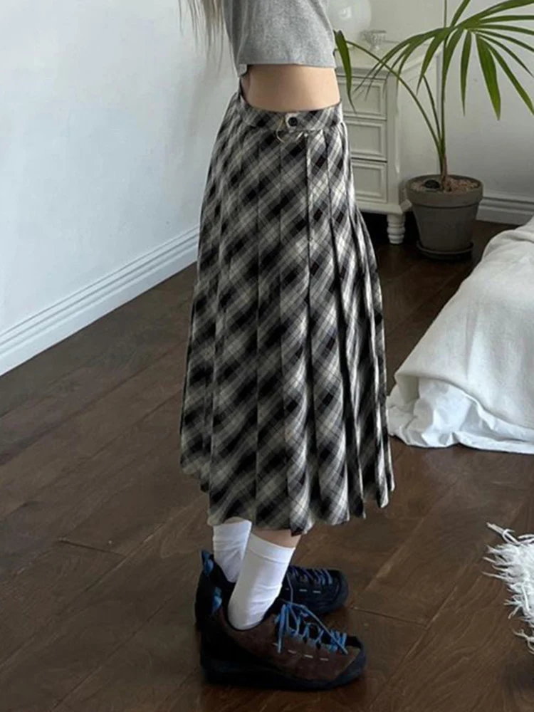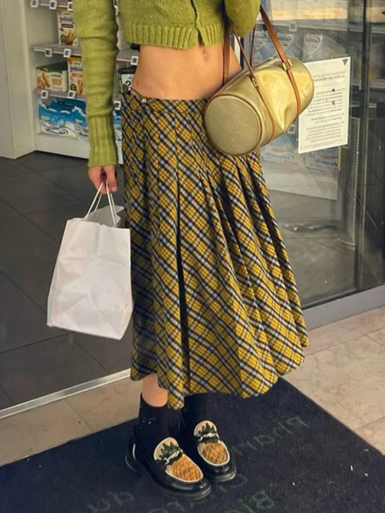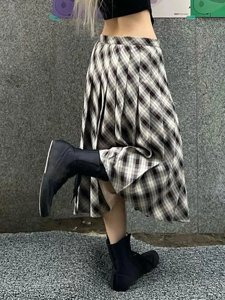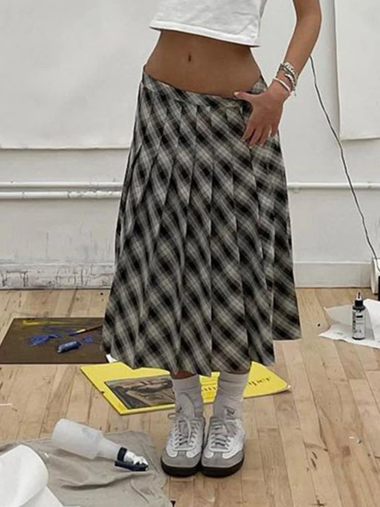 Plaid Striped Pleated Skirts for Women Harajuku Summer Low Waist Midi Skirt Women y2k Aesthetic Fashion Schoolgirl