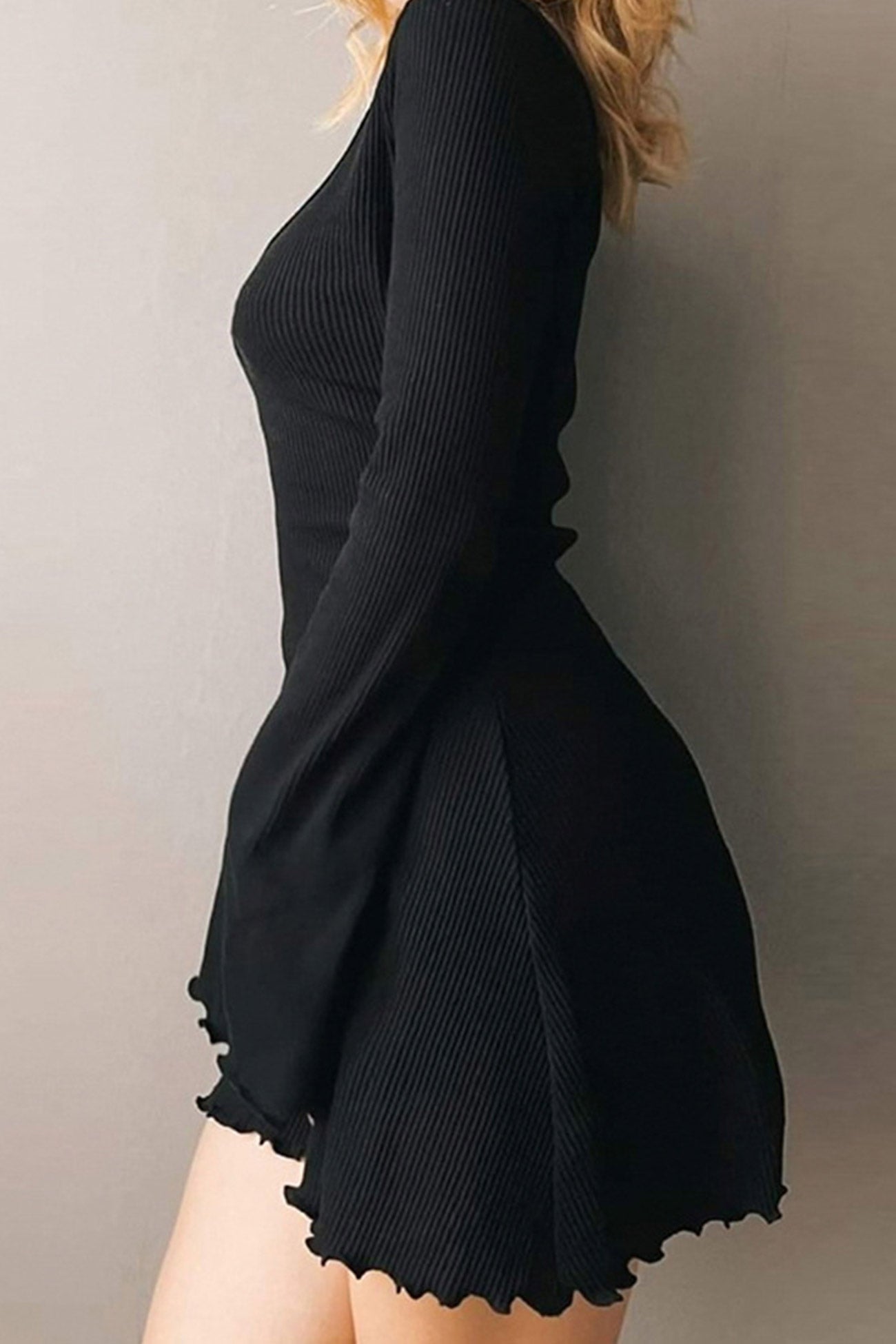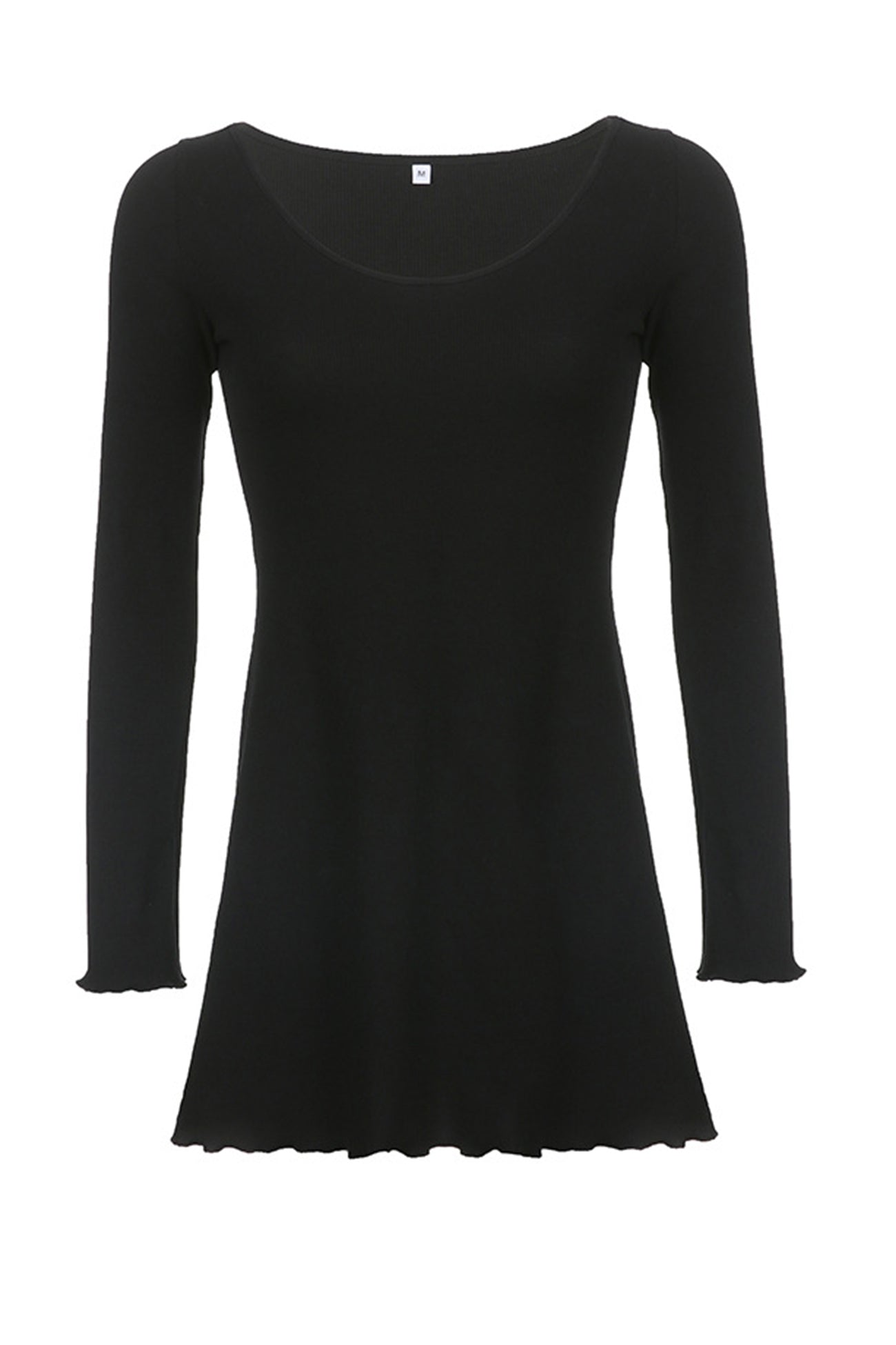 BXOXO - Round Neck Long Sleeve Lacework Hem Dress