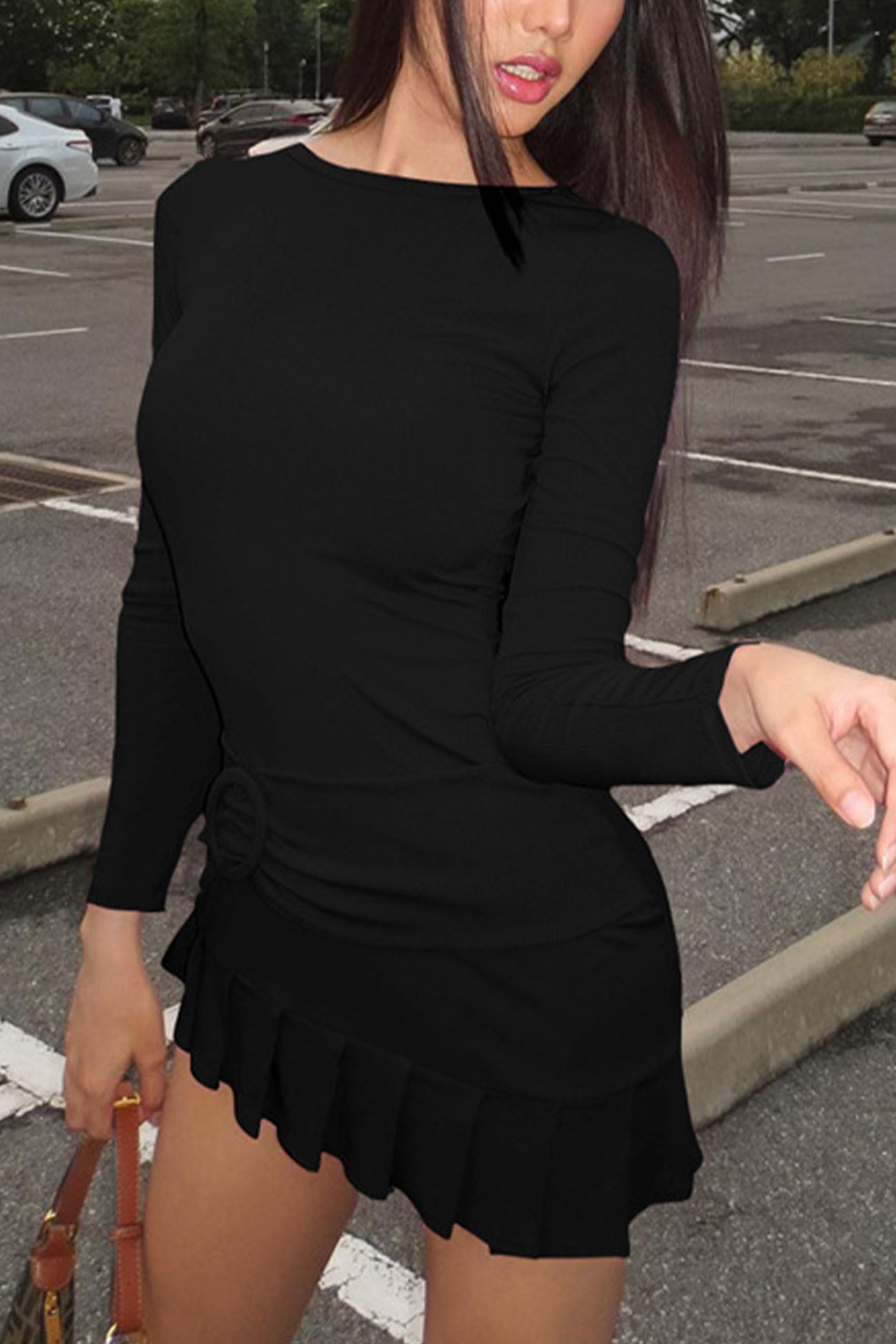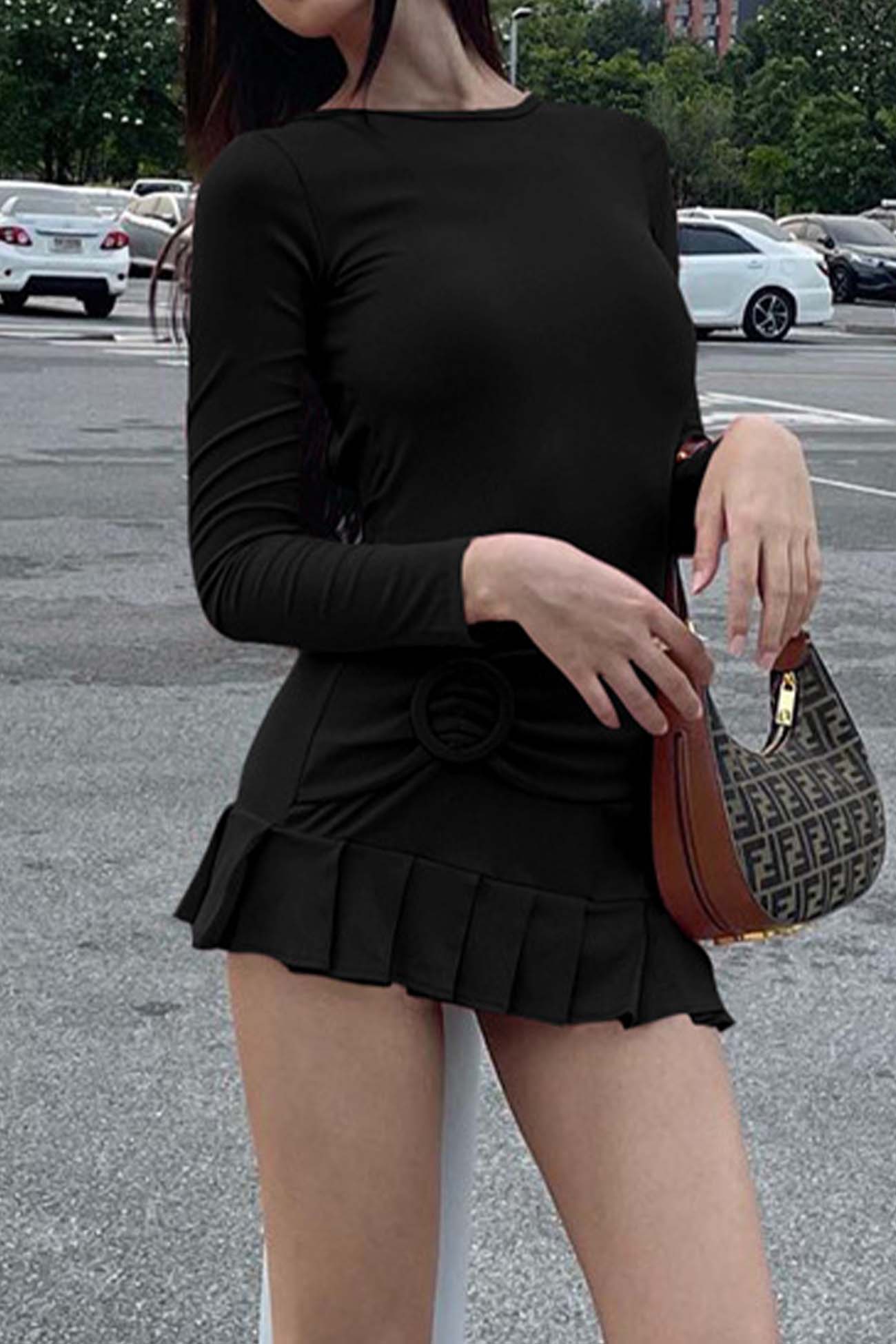 BXOXO - Ruched Ring Backless Pleated Hem Dress