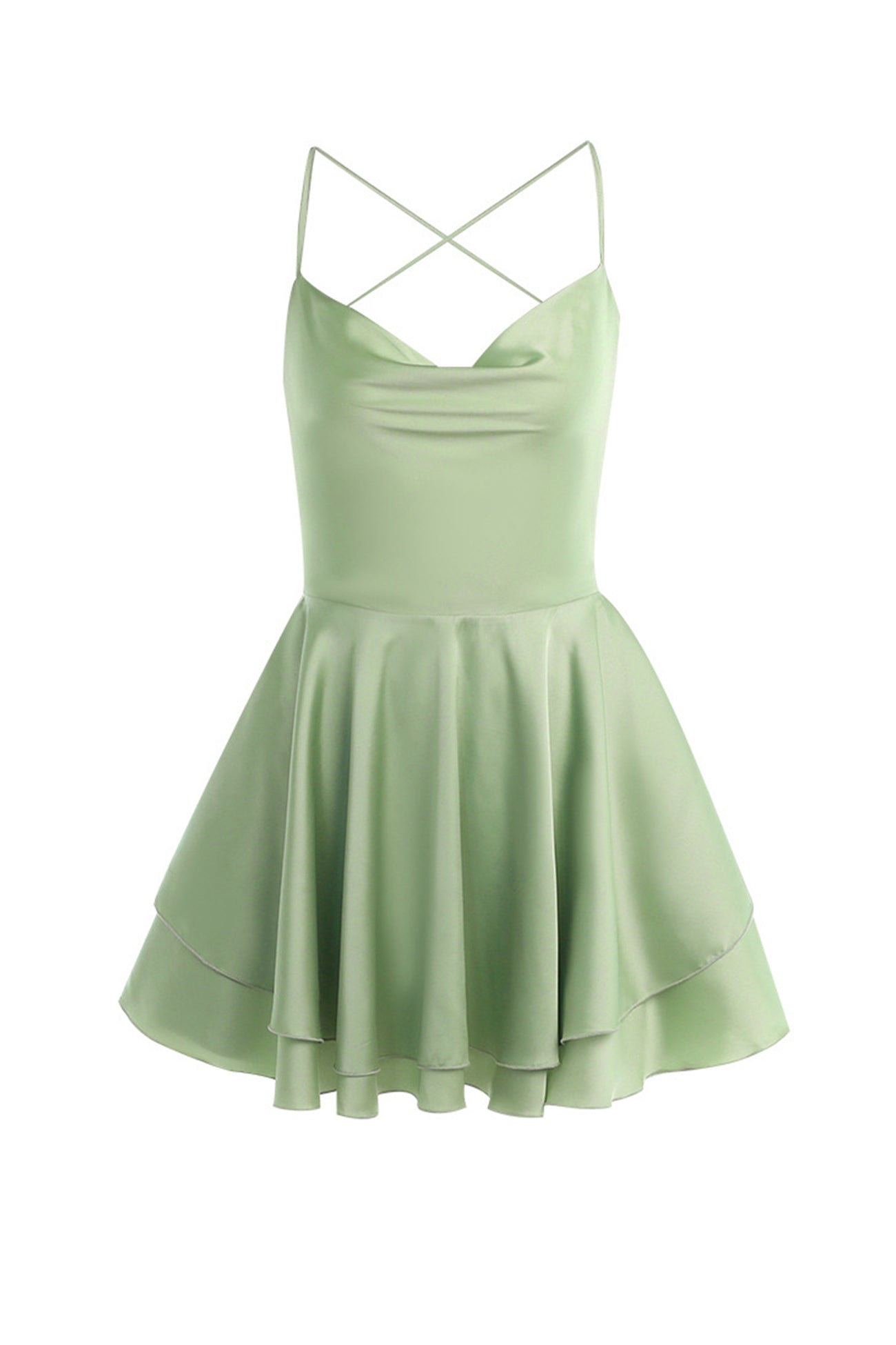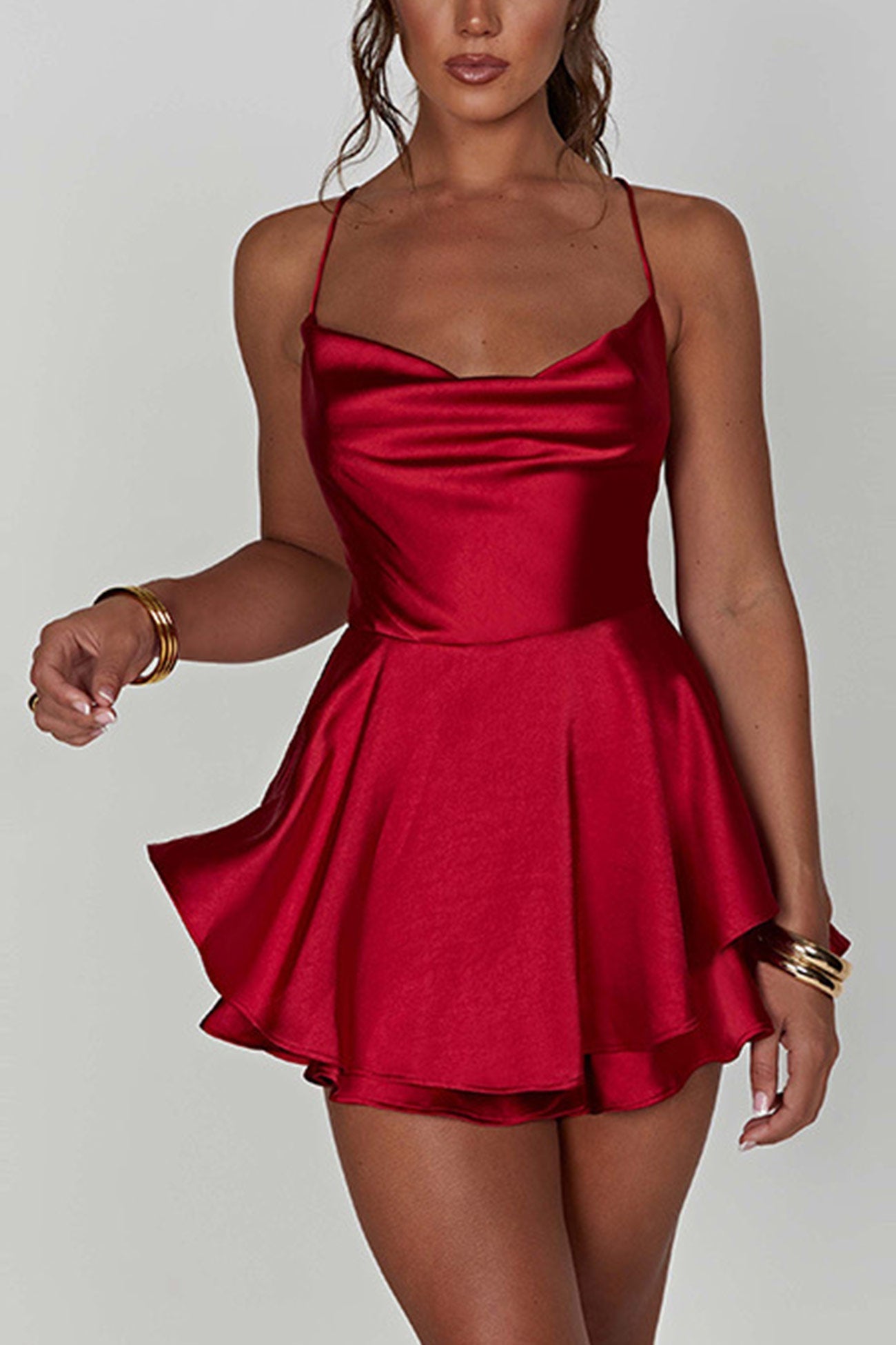 BXOXO - Satin Cowl Neck Tie-back Tiered Cami Dress