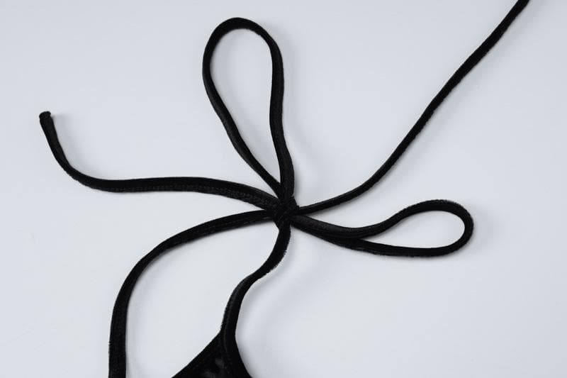• Self Tie Mesh Patchwork Backless Velvet Solid Cami Maxi Dress