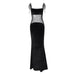 Self Tie Mesh Patchwork Backless Velvet Solid Cami Maxi Dress