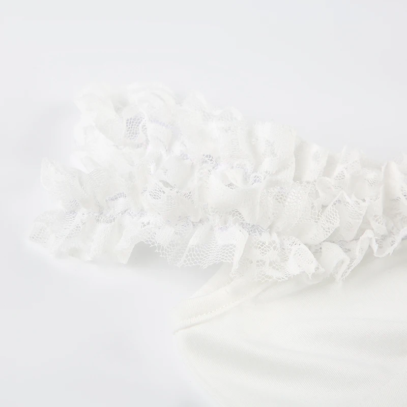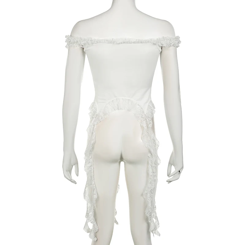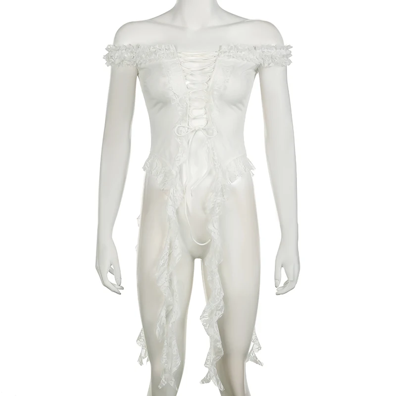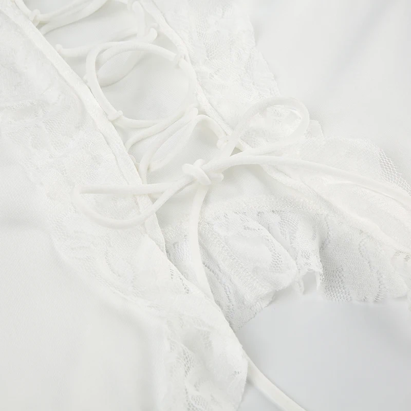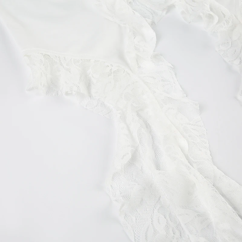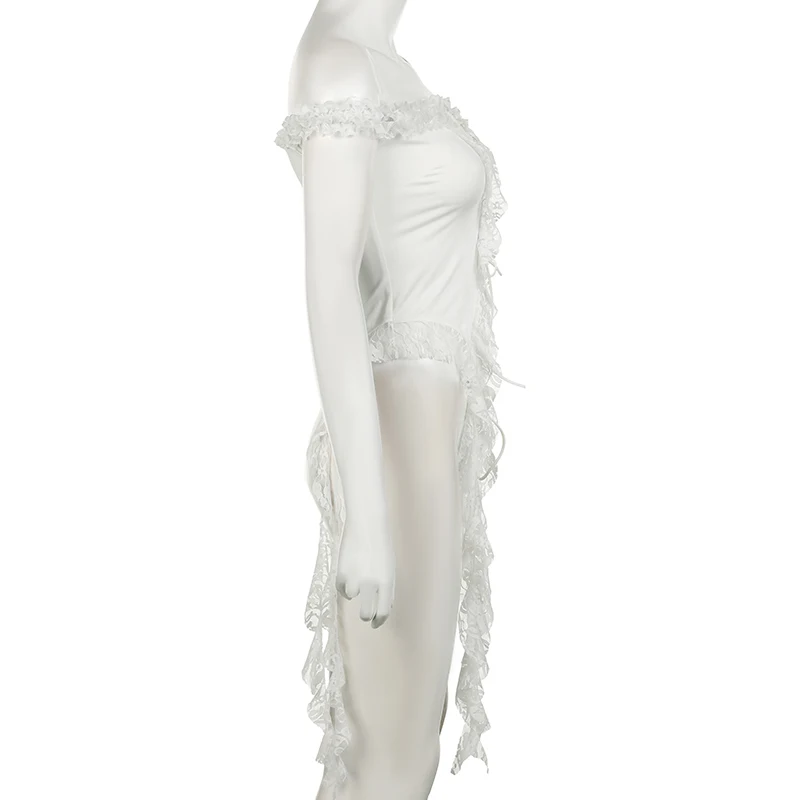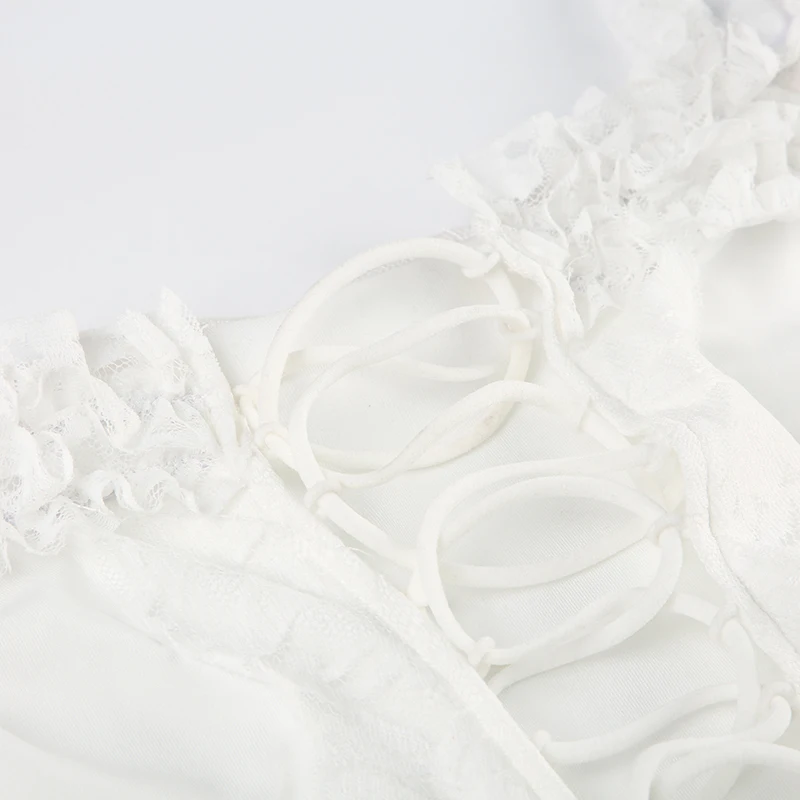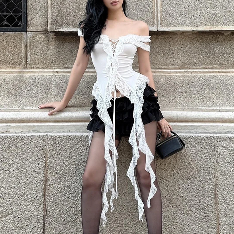 Sexy Ruffled Hem Lace Tank Top Off Shoulder White Tie Up Aesthetic Tube Top Holiday Summer Fashion Camisole Skinny
